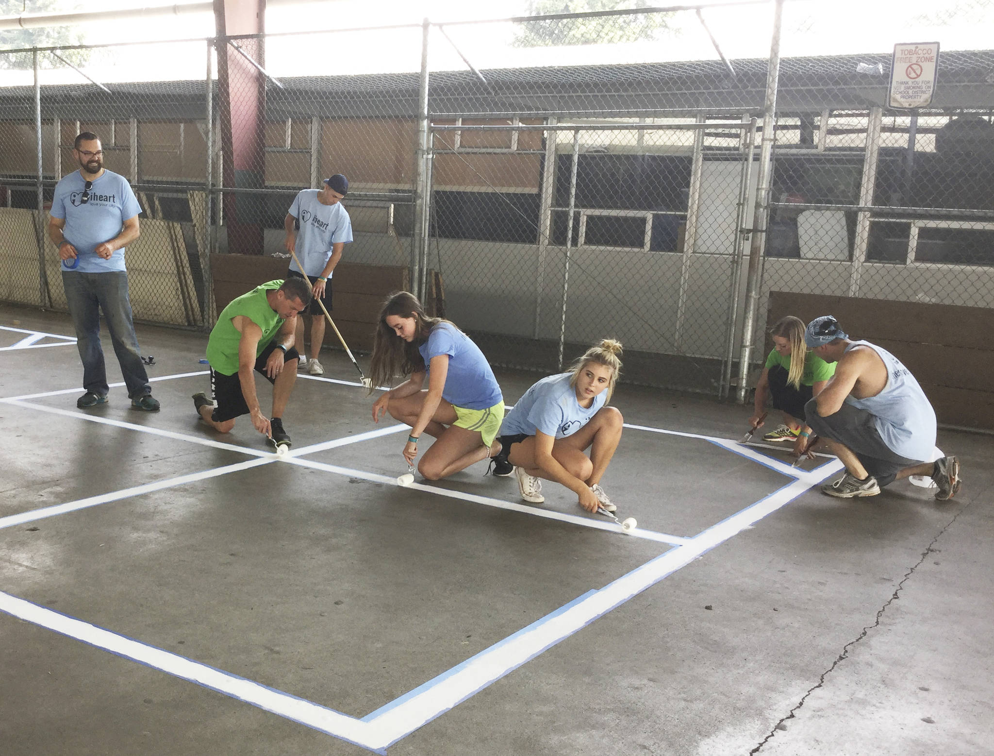 A team of volunteers led by the Hutchinsons, which included their daughter Reese, were finishing their last project that Friday, repainting the exterior of Marysville Middle School, re-striping the covered basketball court surface and other improvements.