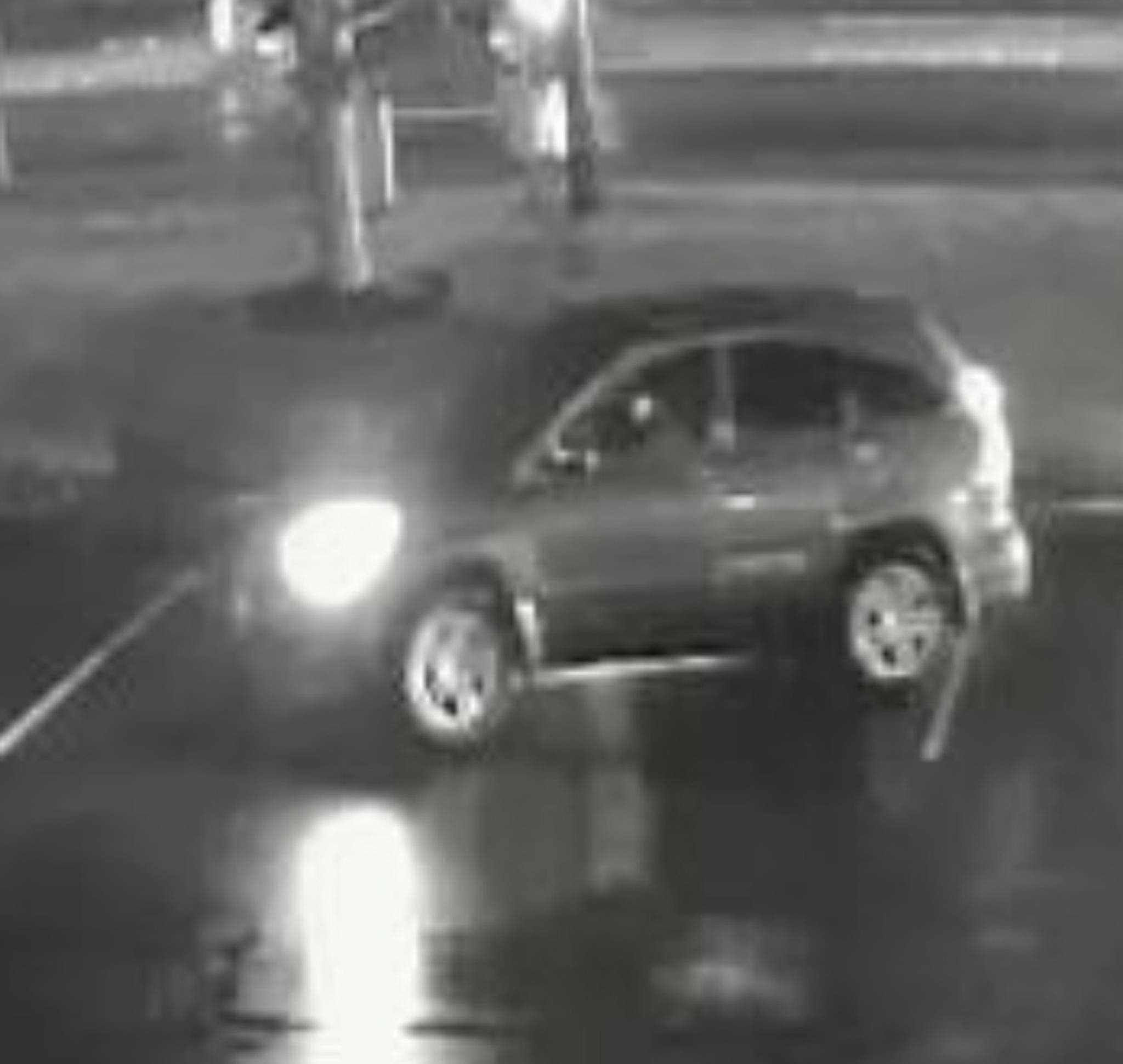 Investigators believe that the pictured vehicle they hope to locate is a 2010-2011 Honda CR-V sport utility vehicle, possibly gray, silver, red, or burgundy in color. The driver appears to be a shorter white female, possibly wearing glasses. She is also wearing an oversized coat and carrying a large purse.