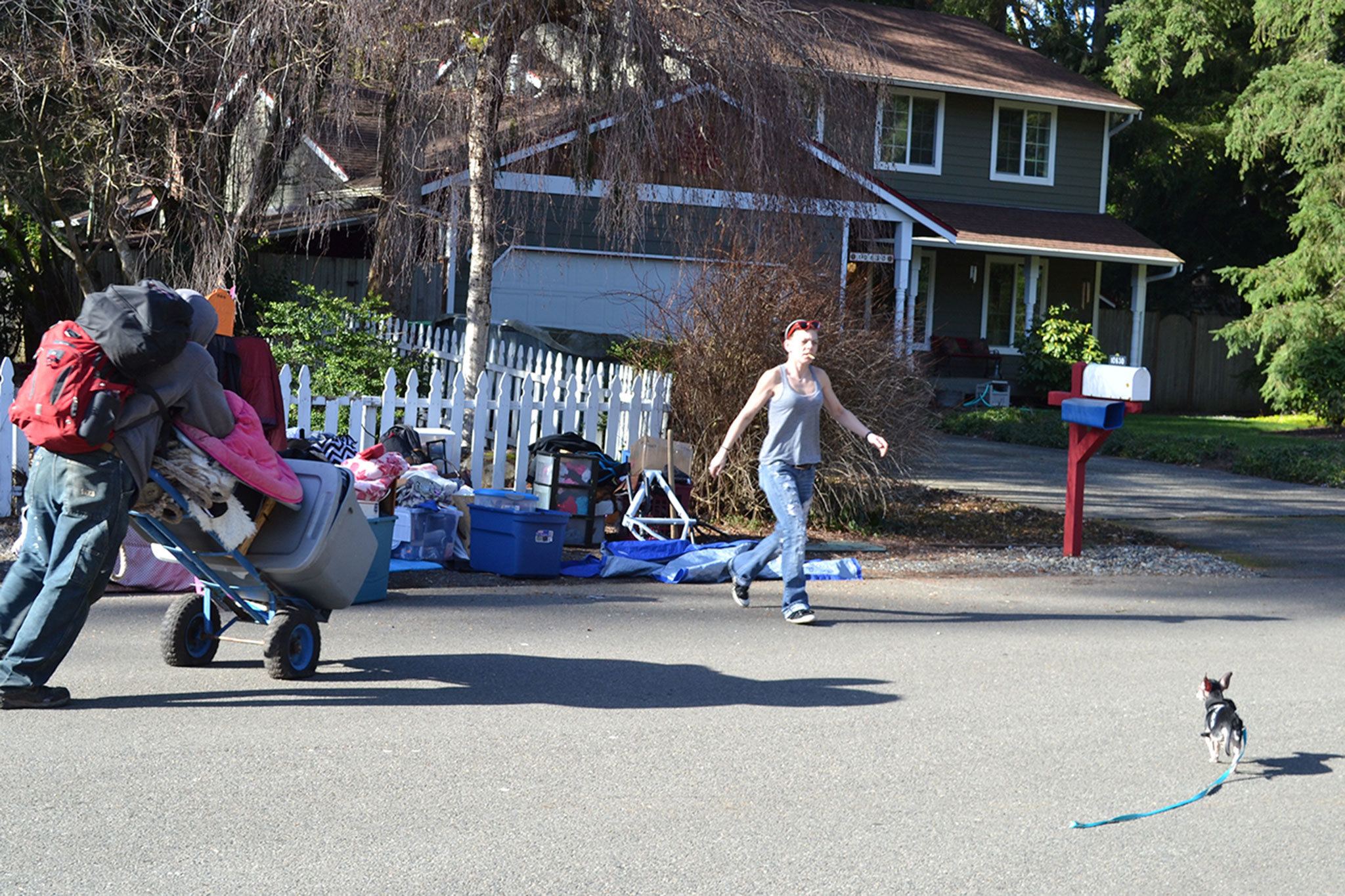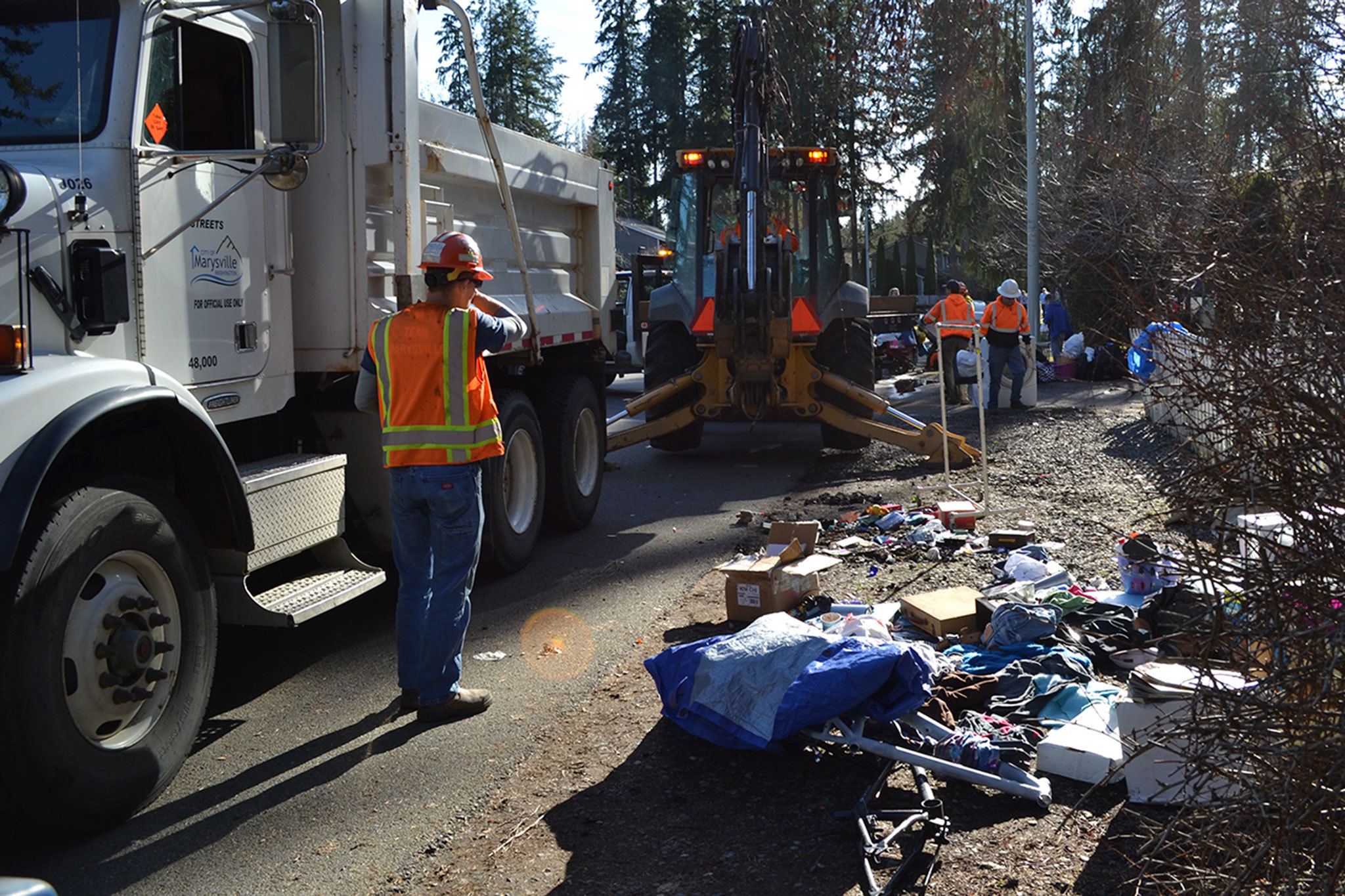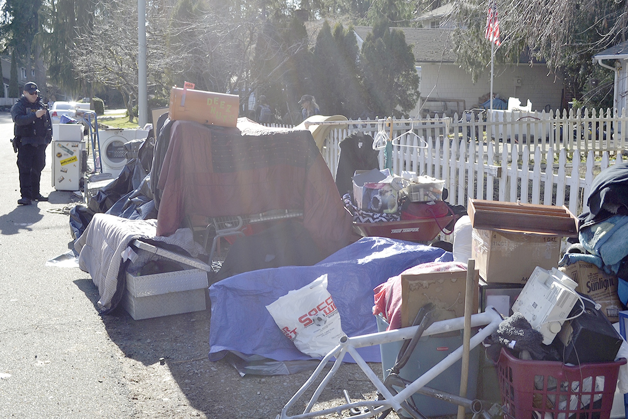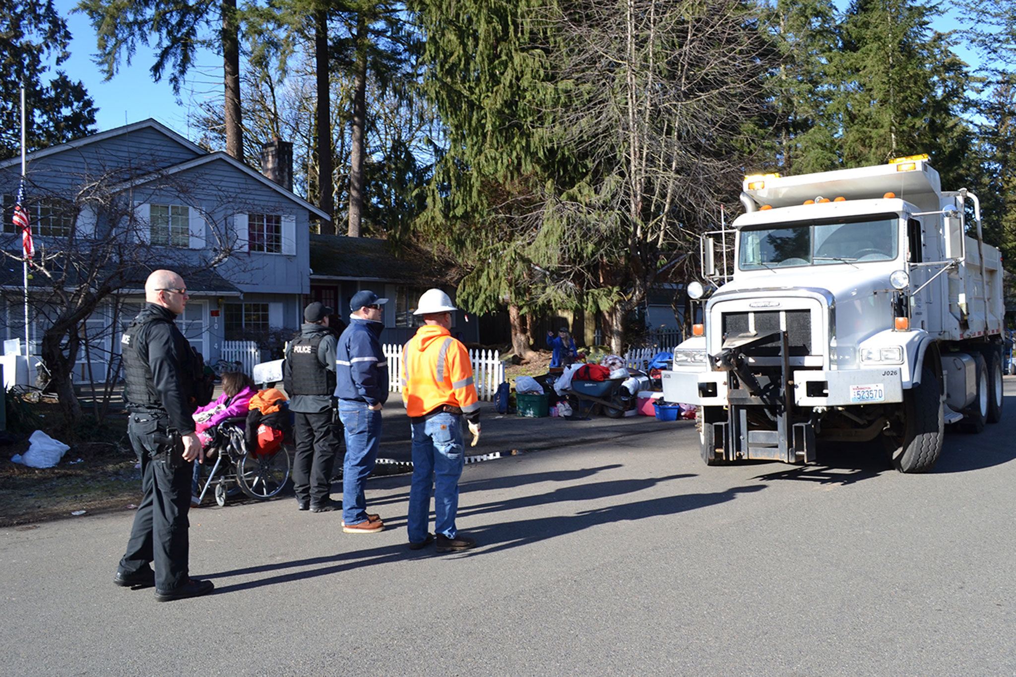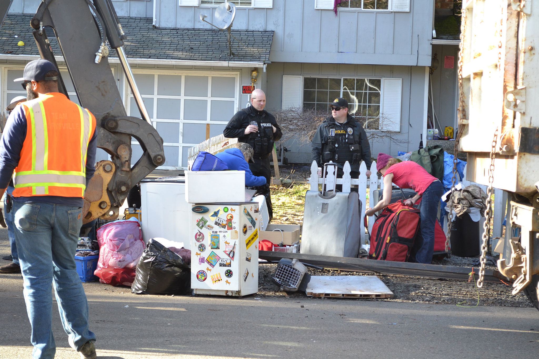 All morning and afternoon neighbors watched as police and city cleanup crews did their job. Officers gave inhabitants until 2 p.m. to get their stuff out and move it. A dozer and dump truck picked up what was left.