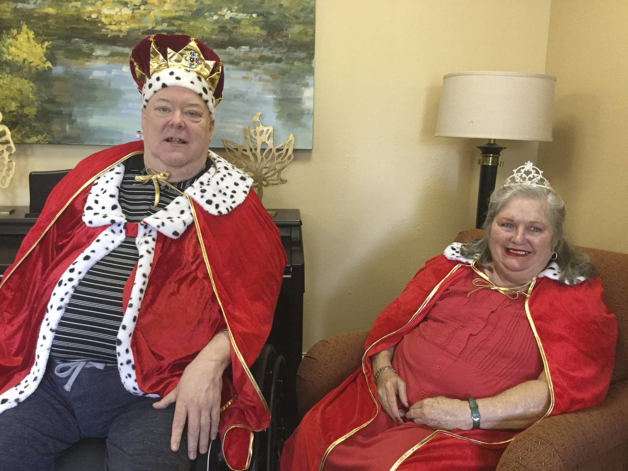 Queen Theresa was born in Coronado, Calif. outside San Diego. Her husband has since passed away, while her son has moved to Marysville who has been a true caregiver for her since arriving at the center two years ago. Why was she named queen? “I’m just a friendly person, and easy to get along with,” said the longtime dental assistant. She enjoys drawing, painting, and taken 2nd in the center’s annual Christmas card design contest twice. She has her parade wave down.