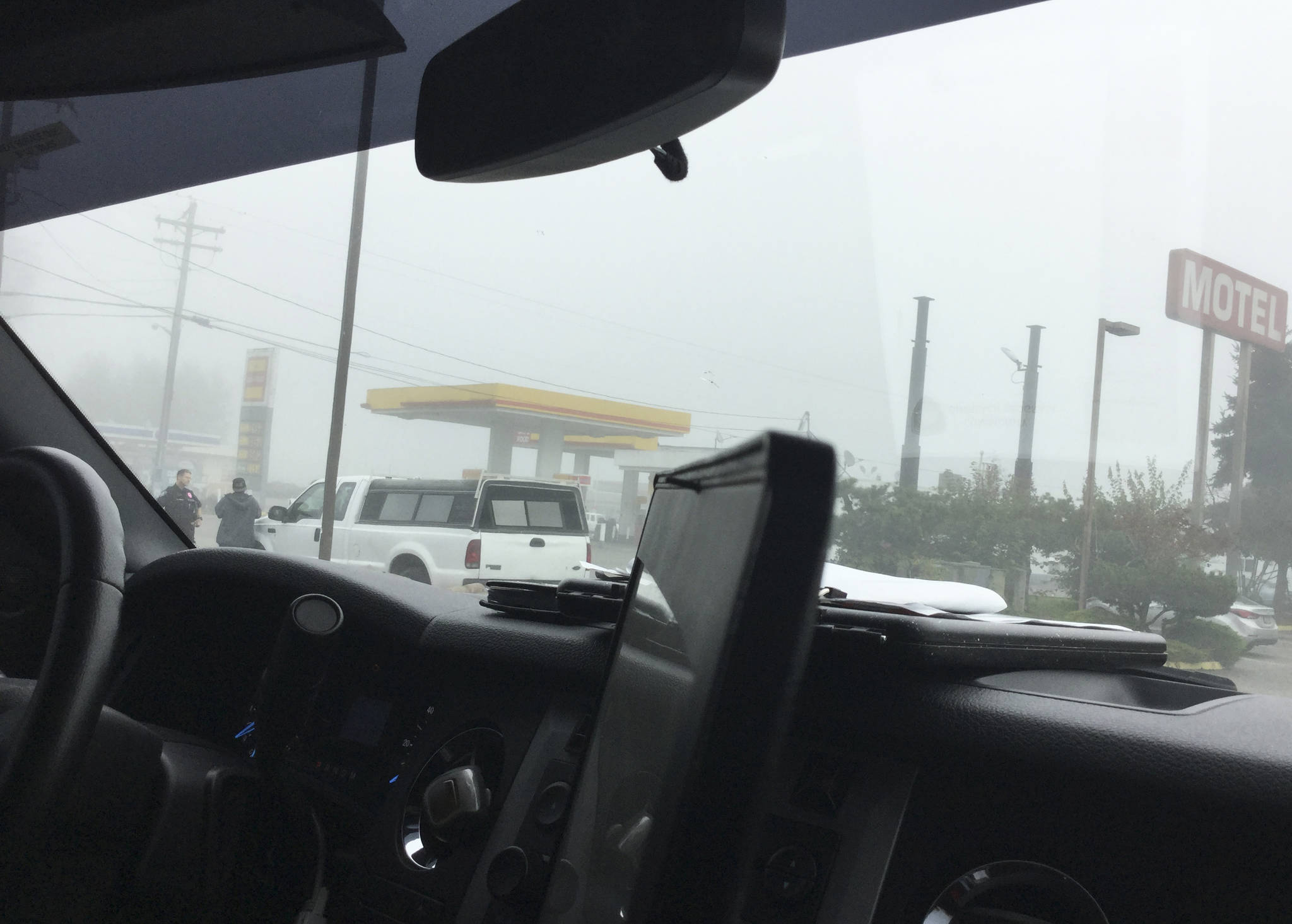 Tramping into the woods to visit homeless camps isn’t the only way the team reaches potential clients. Sutton said they distribute flyers and business cards in camps and in public places, talk to clients who aren’t ready to get help but know someone who might be, and receive referrals for contact from fellow officers and team agencies. On the recent morning patrol, Arlington officers passed on a request for Thomas to meet a homeless man who was apparently living out of his pickup. Thomas pulled into a parking lot between the Denny’s and Arlington Motor Inn at Island Crossing near Interstate 5.