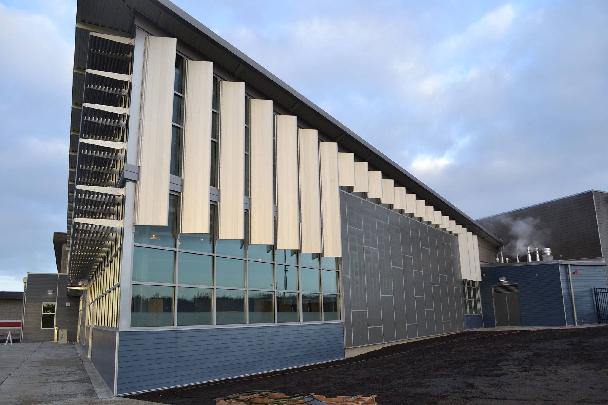 The 16,382-square-foot building supports two daily lunch periods of about 470 students each. The new addition includes a central kitchen, as well as a DECA marketing classroom and Associated Student Body offices.