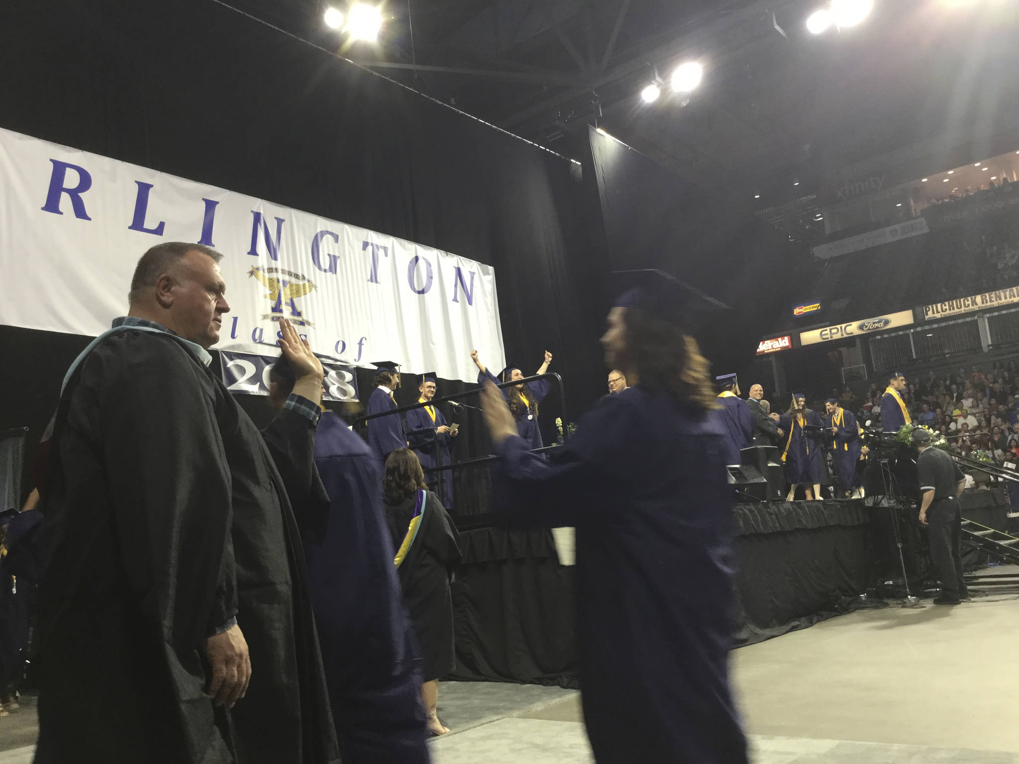 Arlington High School held its commencement exercises at Angel of the Winds Arena in Everett on Thursday, June 14. Proud parents, extended family, friends, teachers and school staff packed the room to show their support for the years leading up to the evening, and the years ahead.