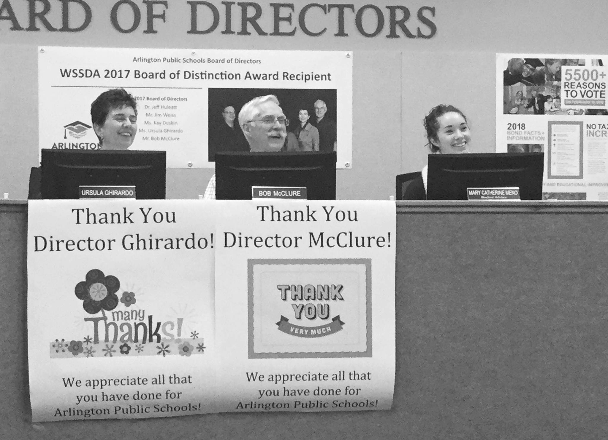 Both are leaving seats at a high point for the board, after it was honored as a Board of Distinction by the Washington State School Directors’ Association, the first time the Arlington board has been honored.