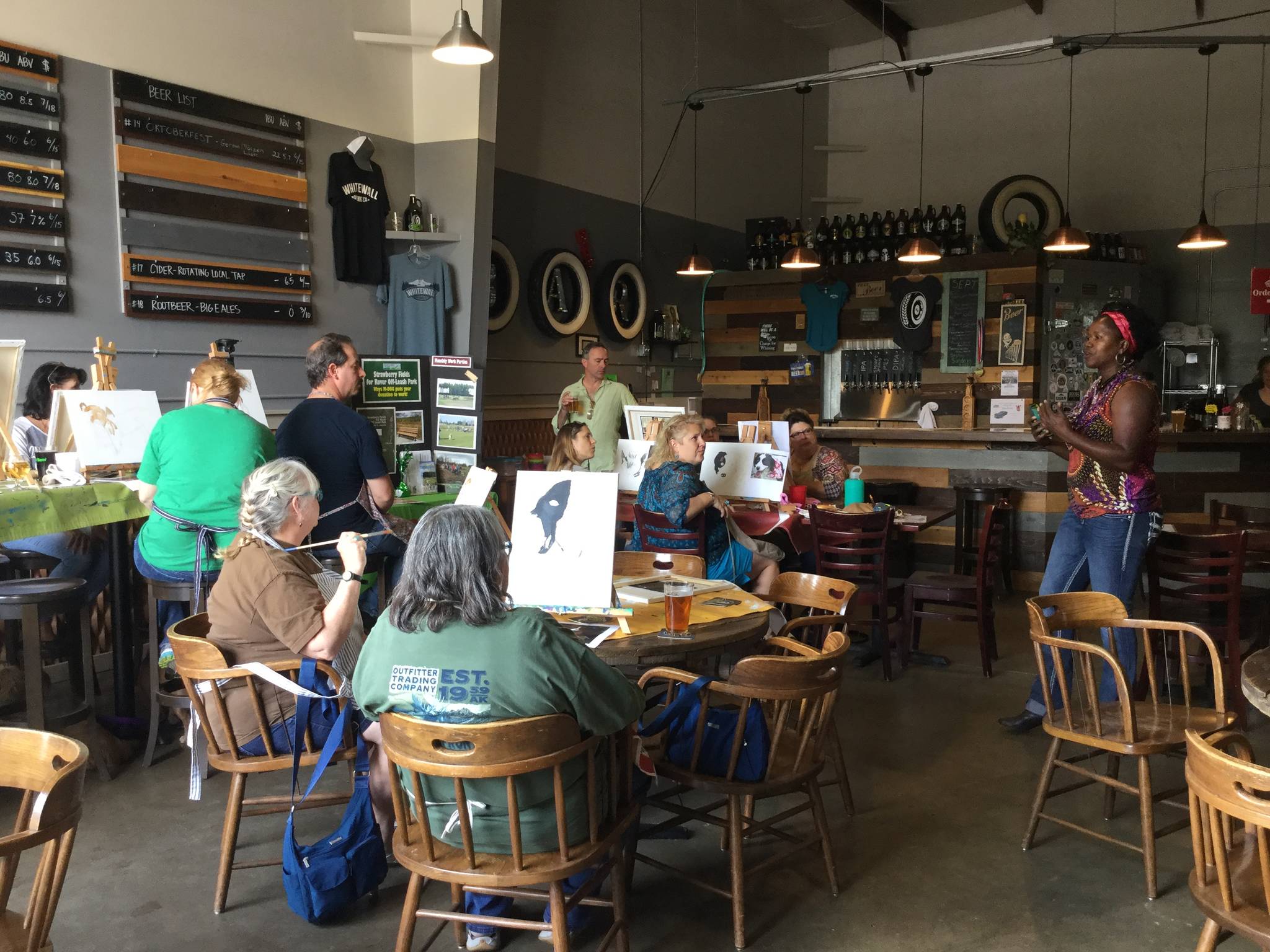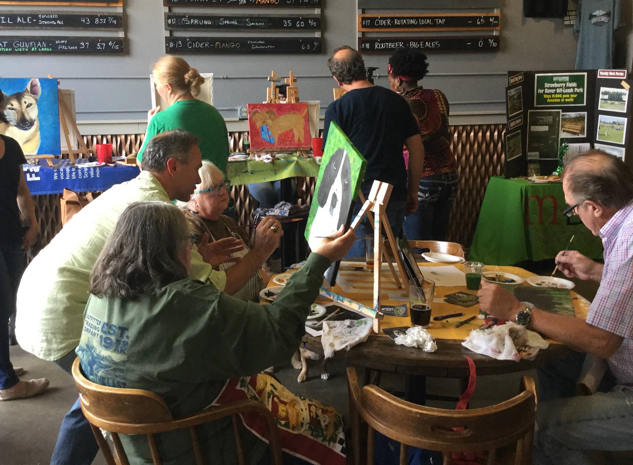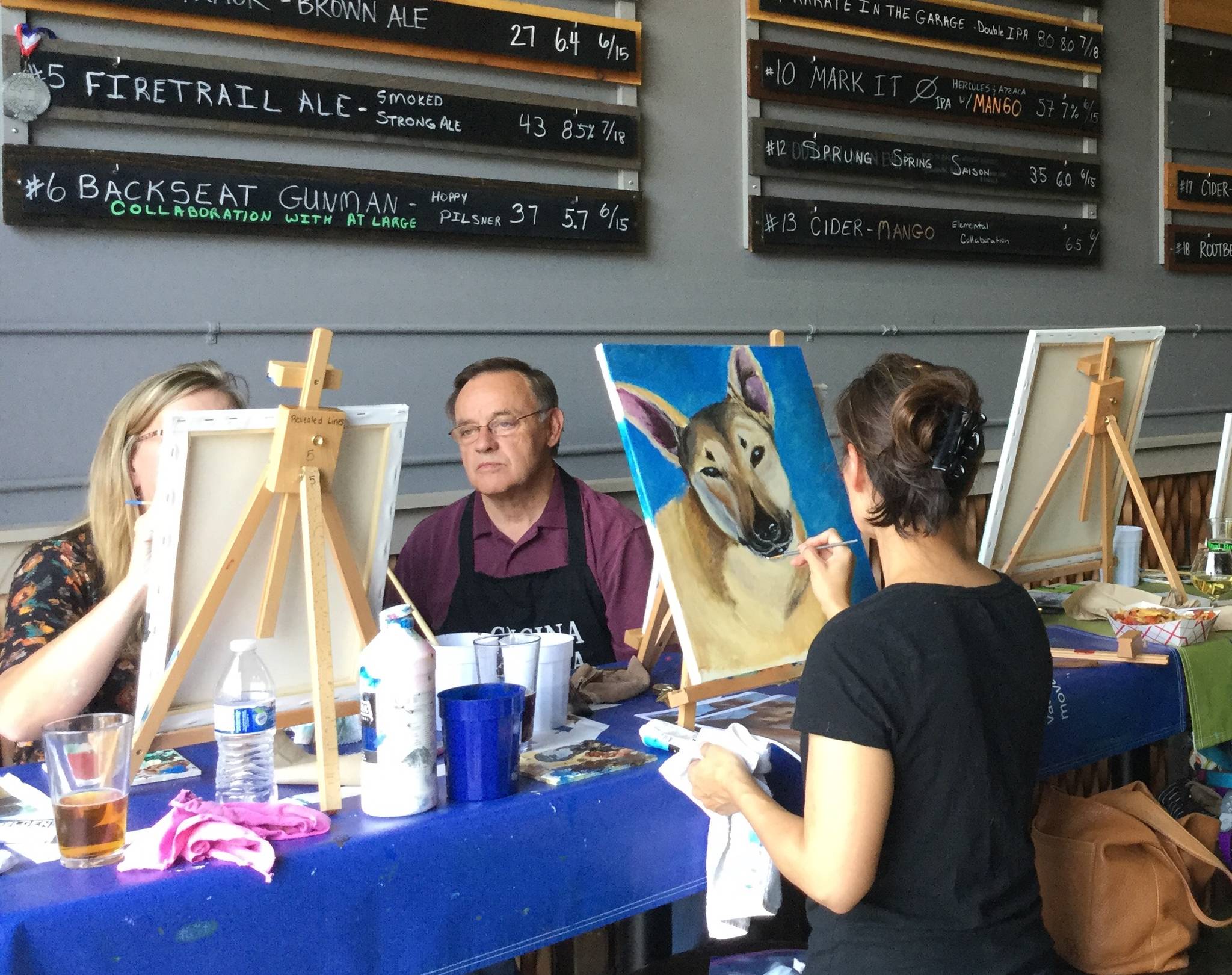 Some participants brought their leashed dogs, who socialized with other dogs and kept an eye on their owner’s painting progress. Other attendees enjoyed an afternoon of sipping suds while letting loose their skills with a brush.