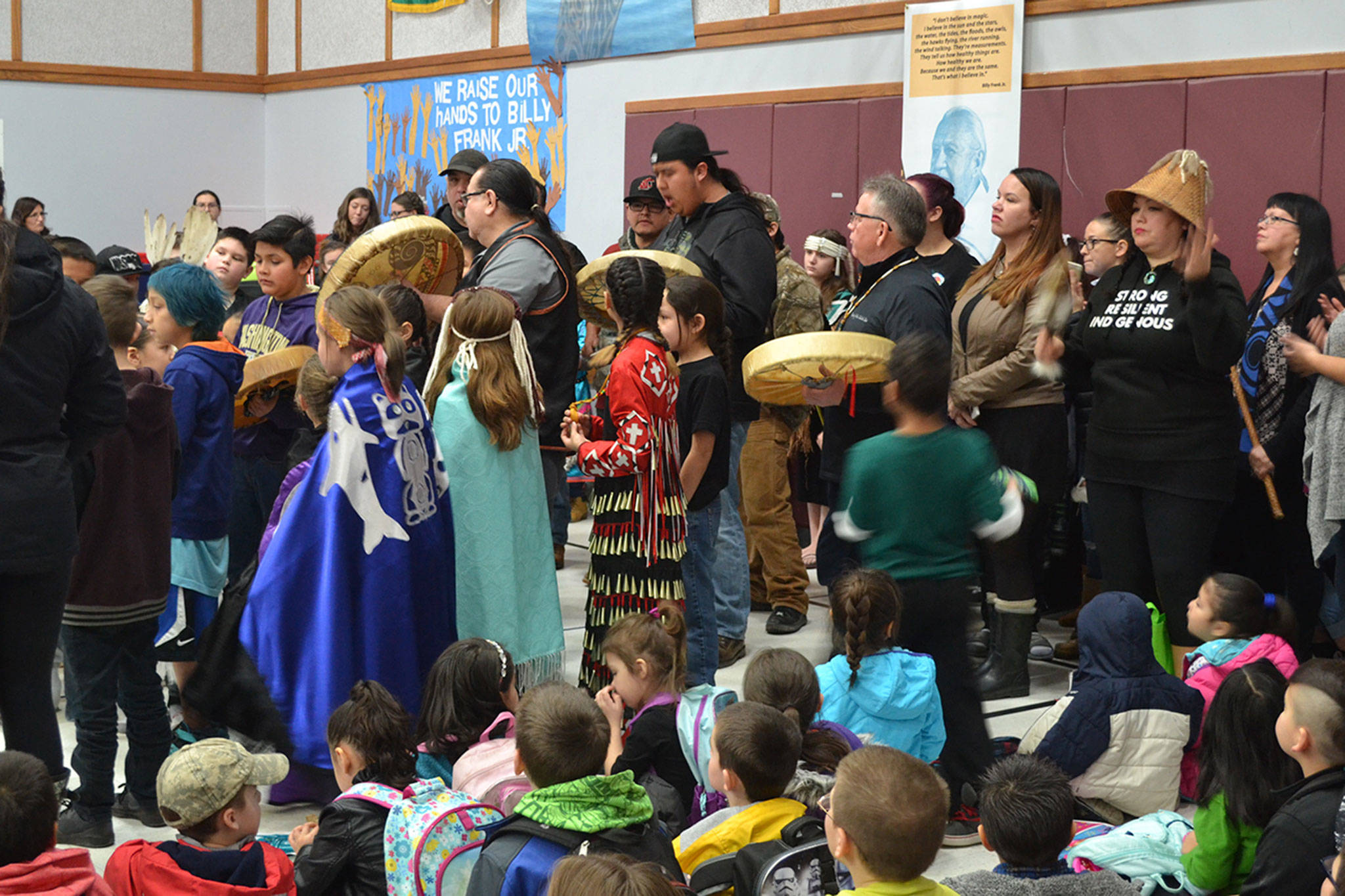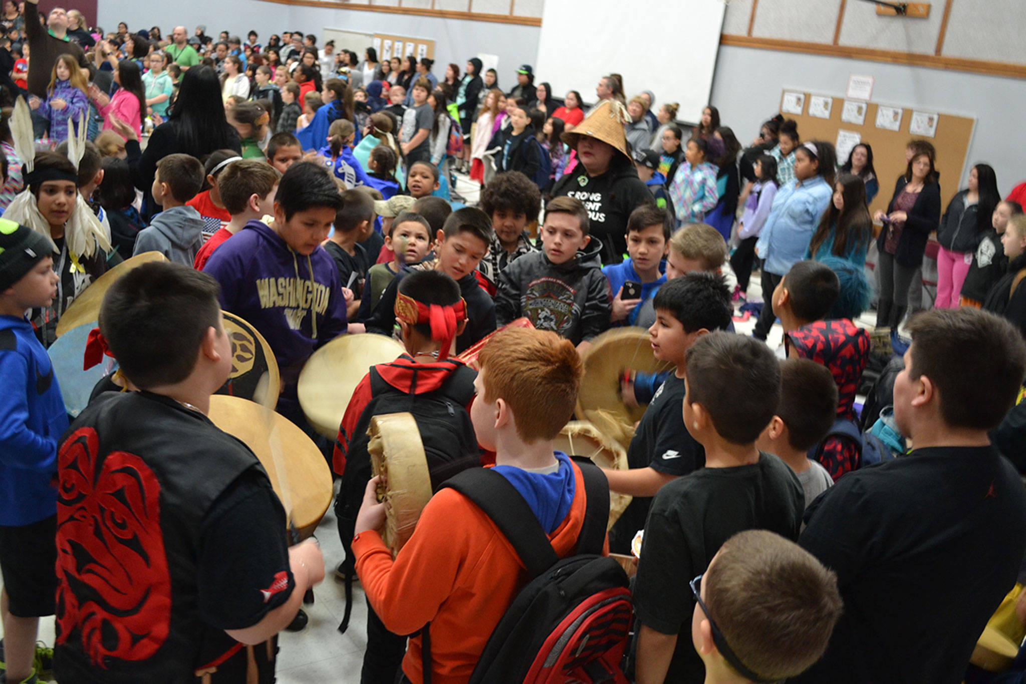 TULALIP – Prior to this week, many Native American students in Tulalip didn’t know much if anything about the legendary Billy Frank Jr. They do now. Chelsea Craig of Quil Ceda Tulalip Elementary came up with a curriculum for all grades to learn about Frank. He is most-famous for fighting for fishing rights that led to the Judge Boldt decision in 1974. At an assembly to celebrate Frank Thursday at the school, Frank’s son, Willie, was among the hundreds in attendance. He was obviously moved by the tribute to his dad.