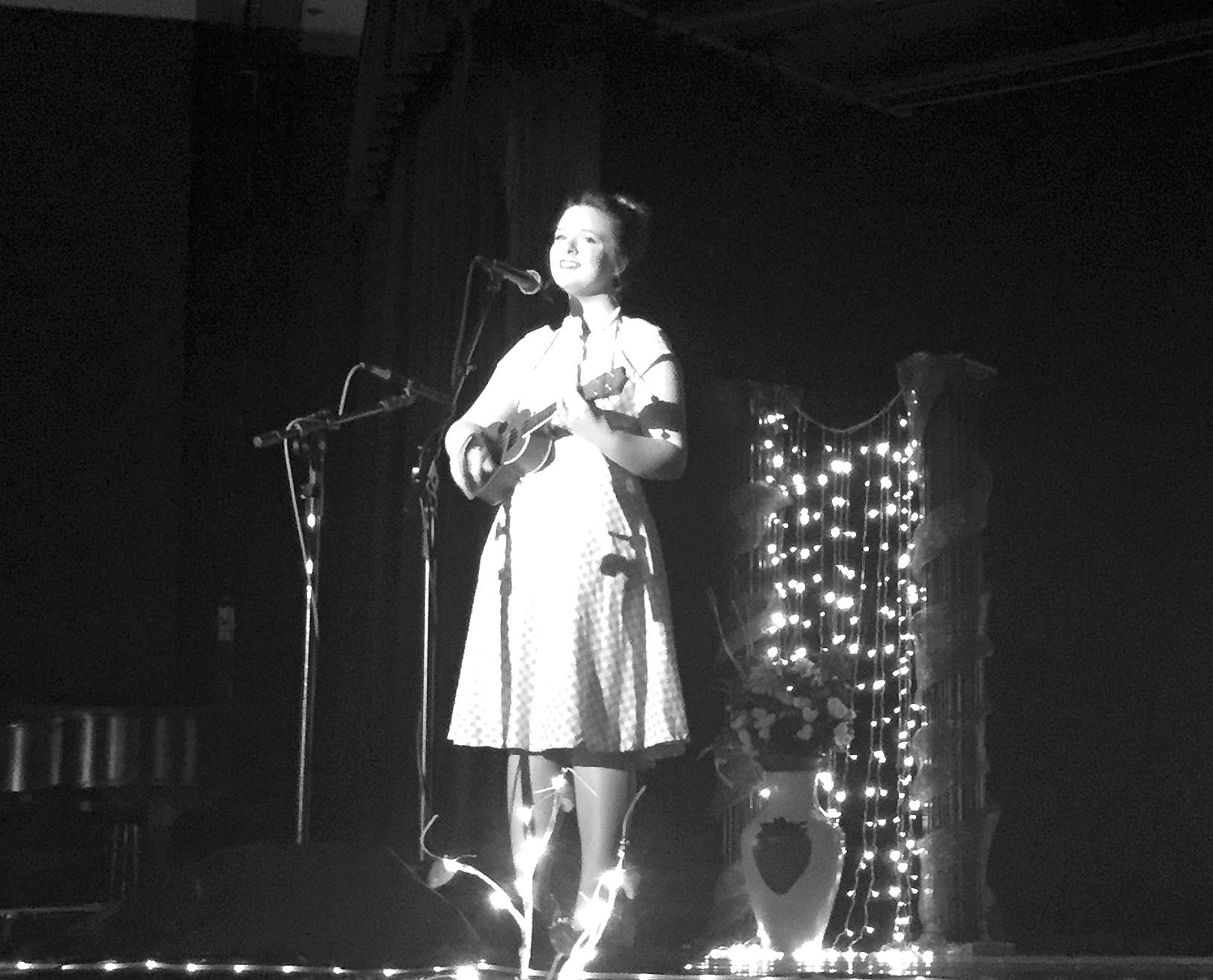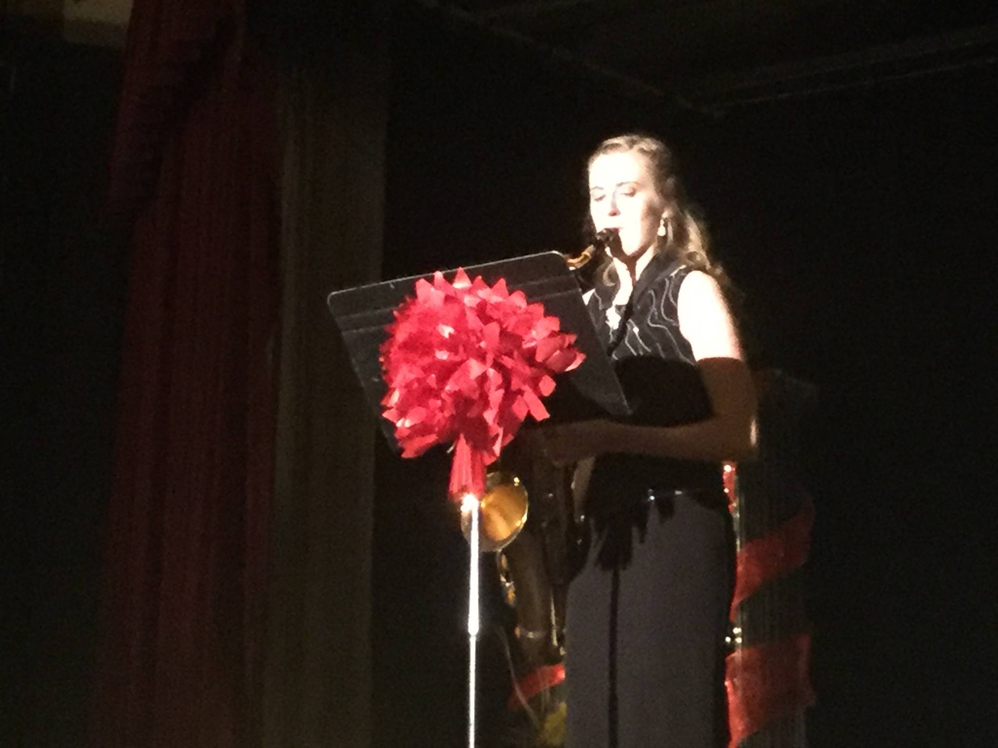 Turral, a 4.0 student who plays in the M-P concert and jazz band, performed a Miles Davis jazz solo on tenor sax. Jacobsen went a more whimsical direction, strumming her ukulele and singing “Dream a Little Dream of Me.”