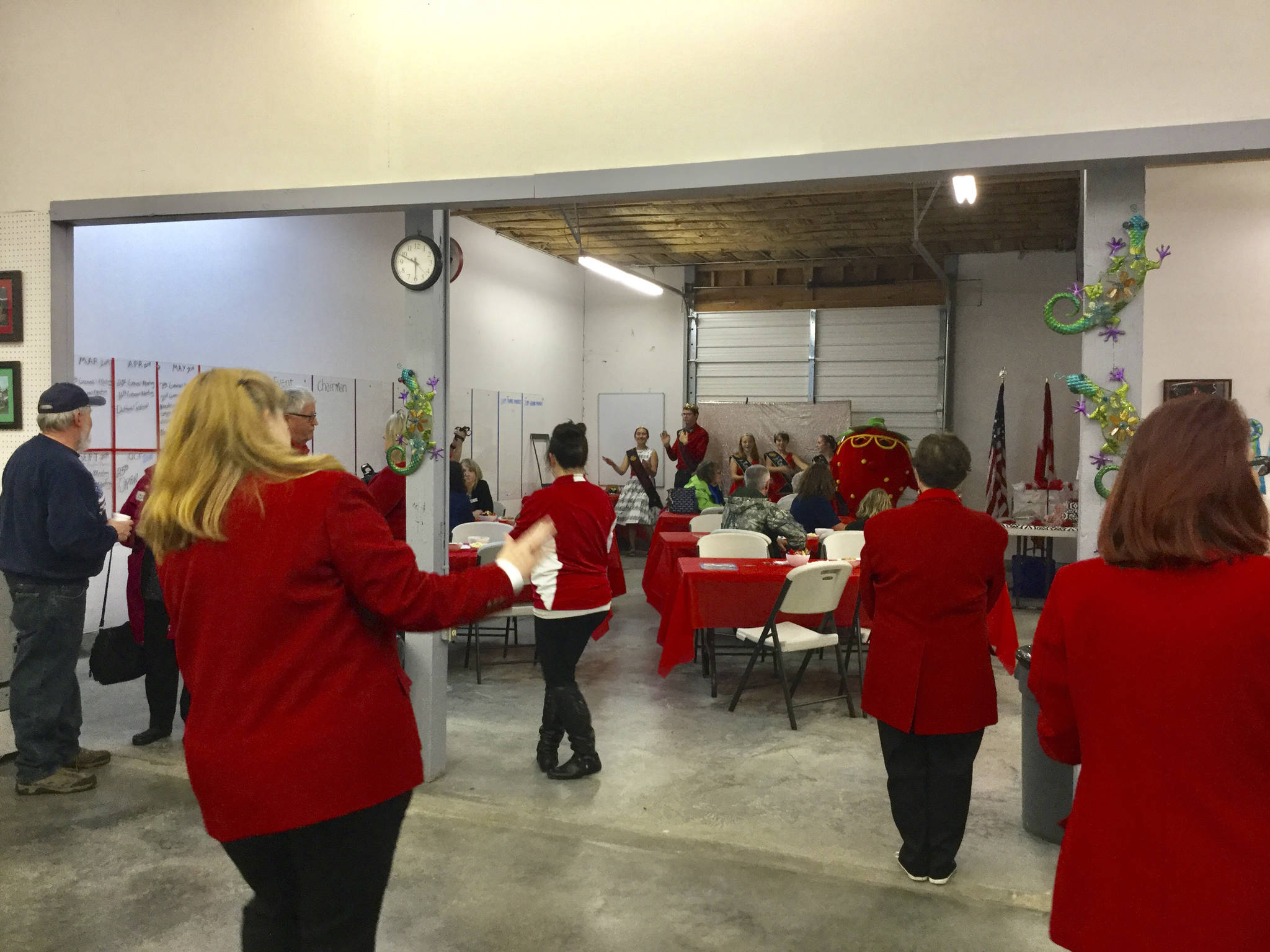 With most of the building facade improvements completed, the office space, merchandise and wall of parade plaques and trophies in place, and the festival float parked in the garage bay, the organization was ready to welcome the some 60 or so visitors who stopped by for tours, barbecue, a raffle, music, photos with dancing berry mascot Jammer, volunteer award presentations, and details about the all-volunteer Maryfest.