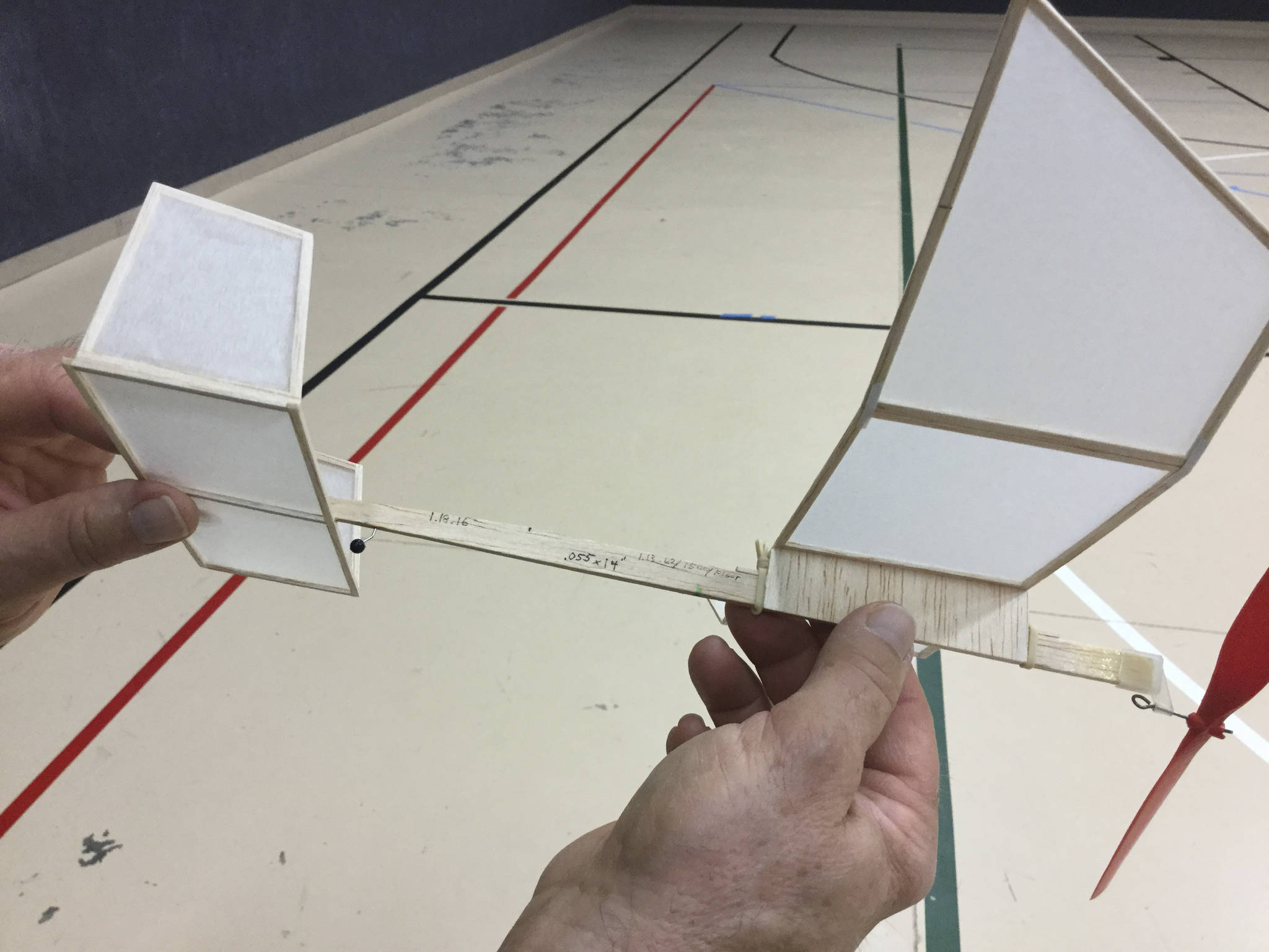 “If the calculations and the number of rubber band turns is right, it should be up in the air for about a minute and a half, but I’m trying to get this plane up to two-and-a-half minutes,” Higgins said.