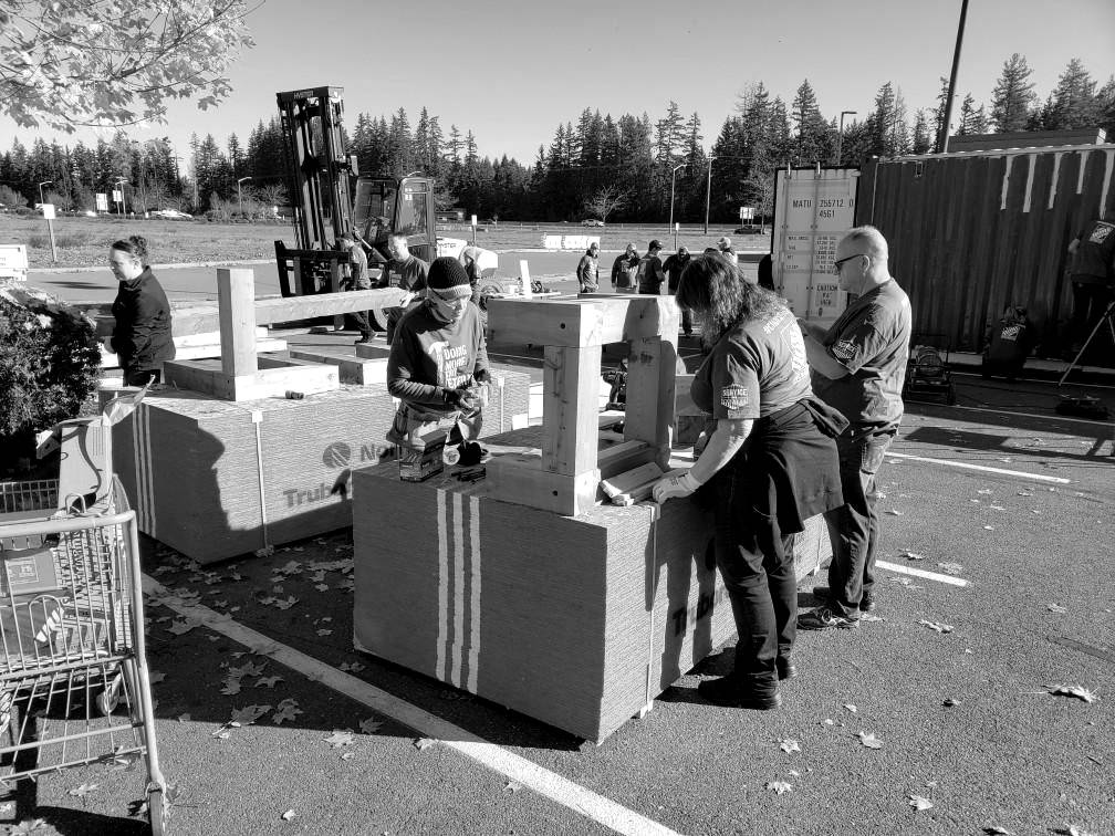 Courtesy Photo Workers at The Home Depot in Tulalip volunteered to build a tiny house for a Marysville-area disabled veteran and father with special needs children.