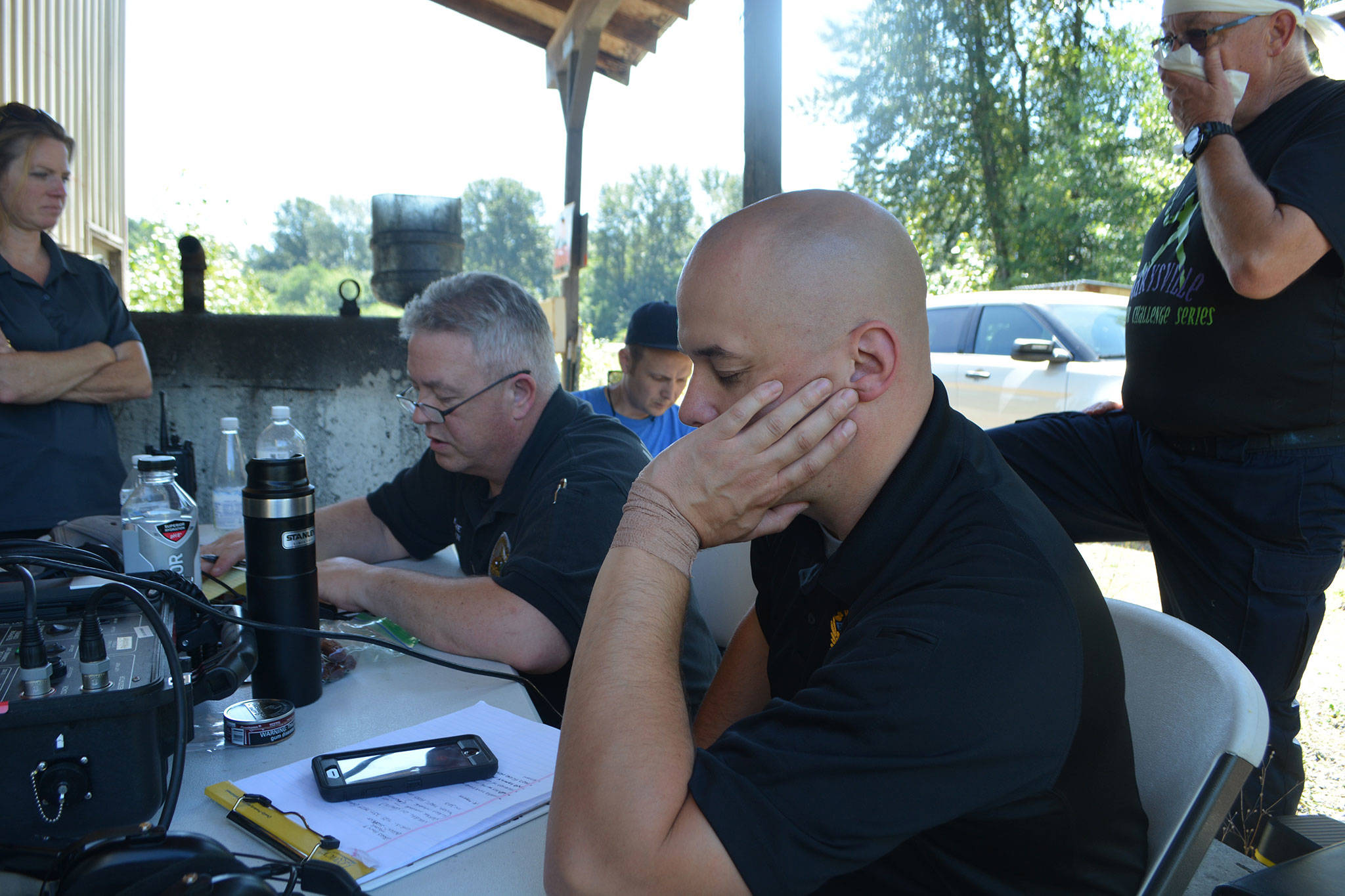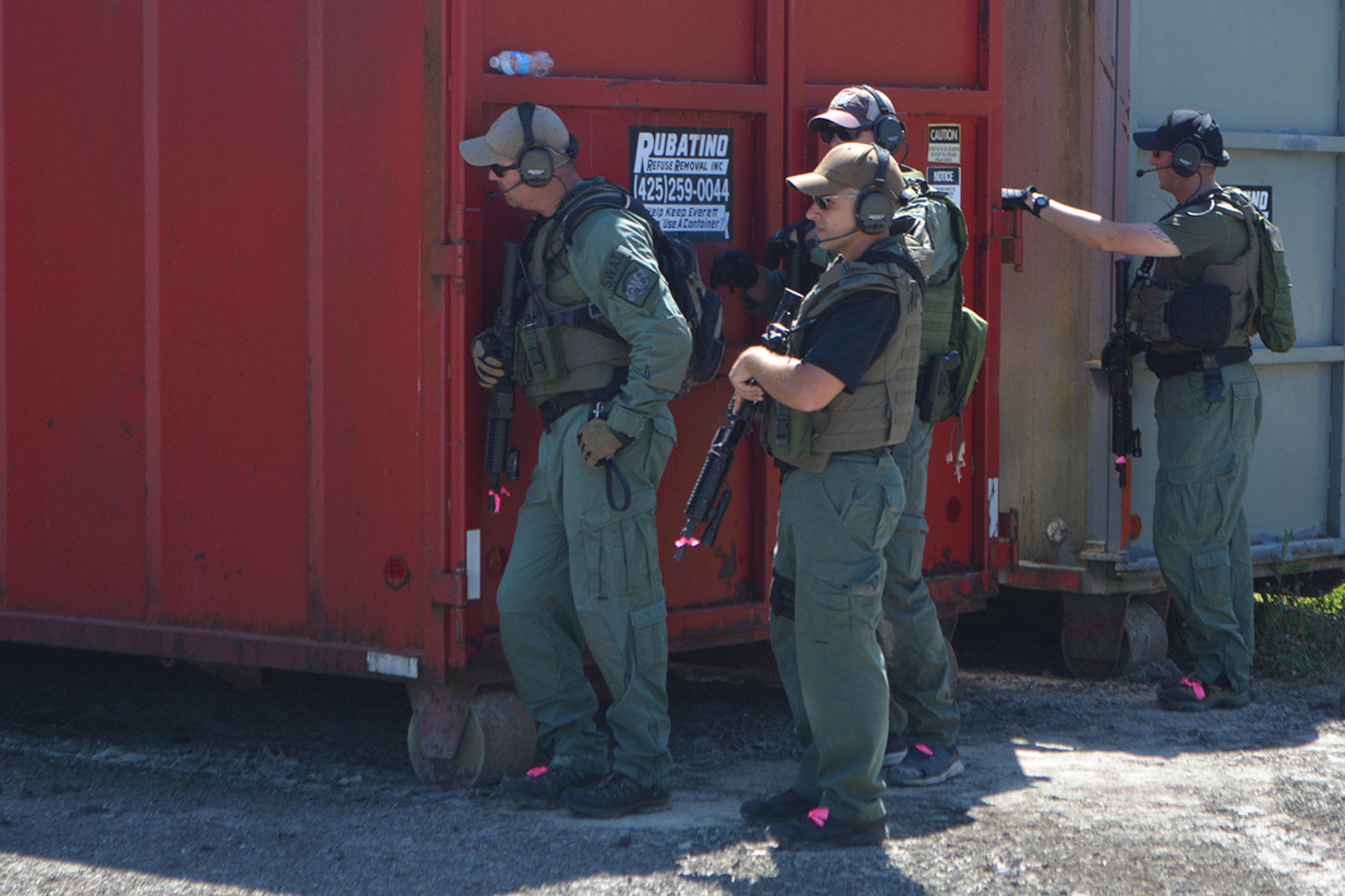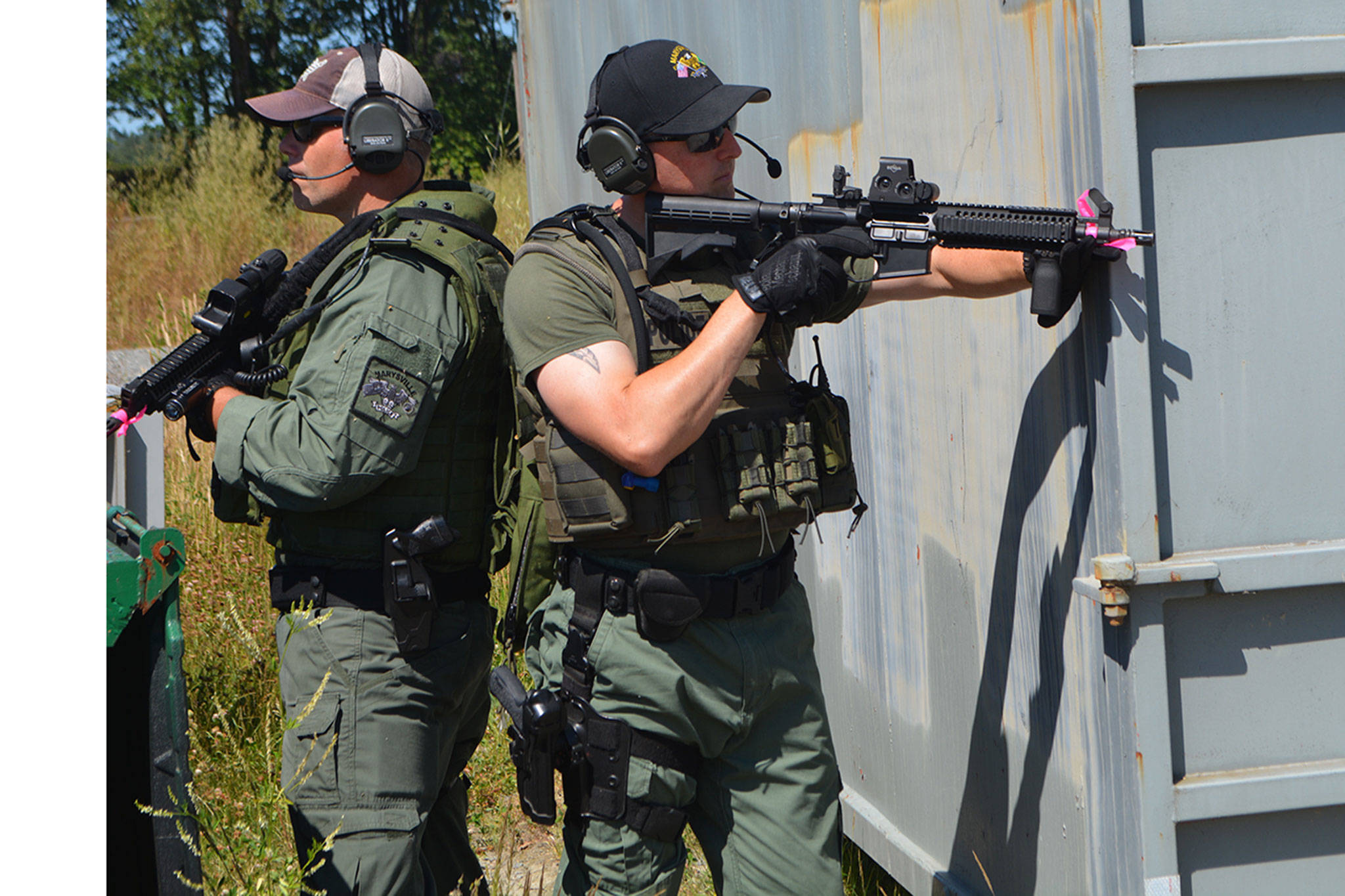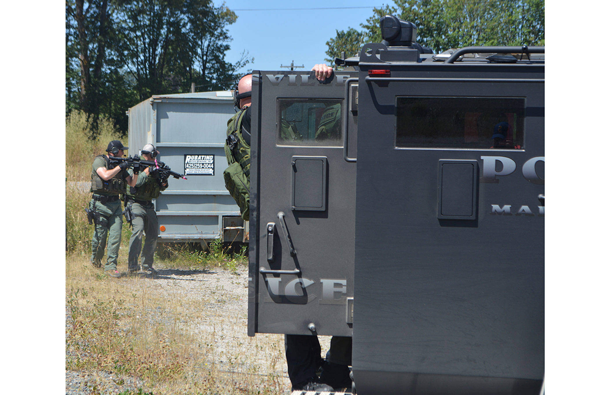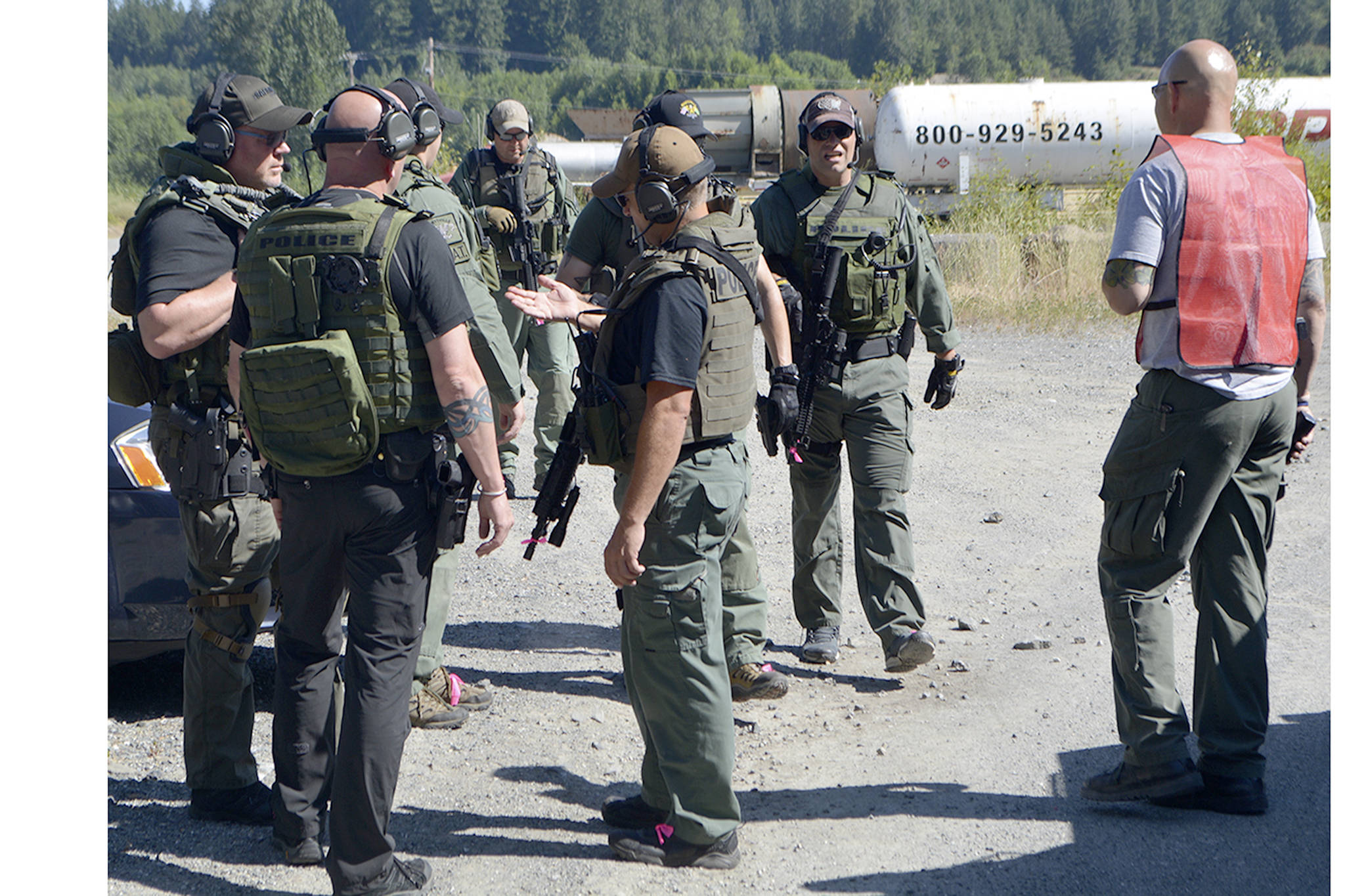 The Marysville Police Department’s Crisis Negotiation and SWAT teams spent hours in the hot sun Monday playing that game.