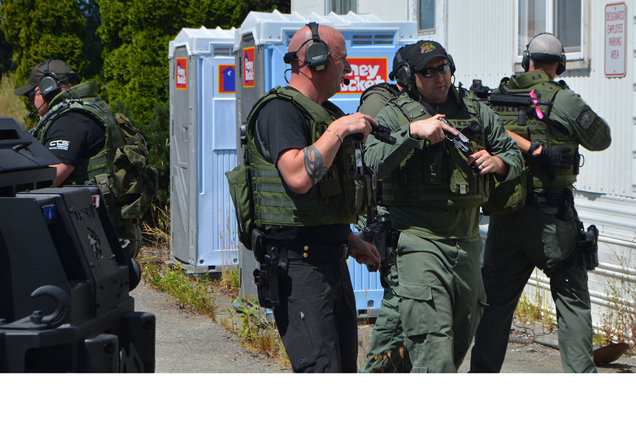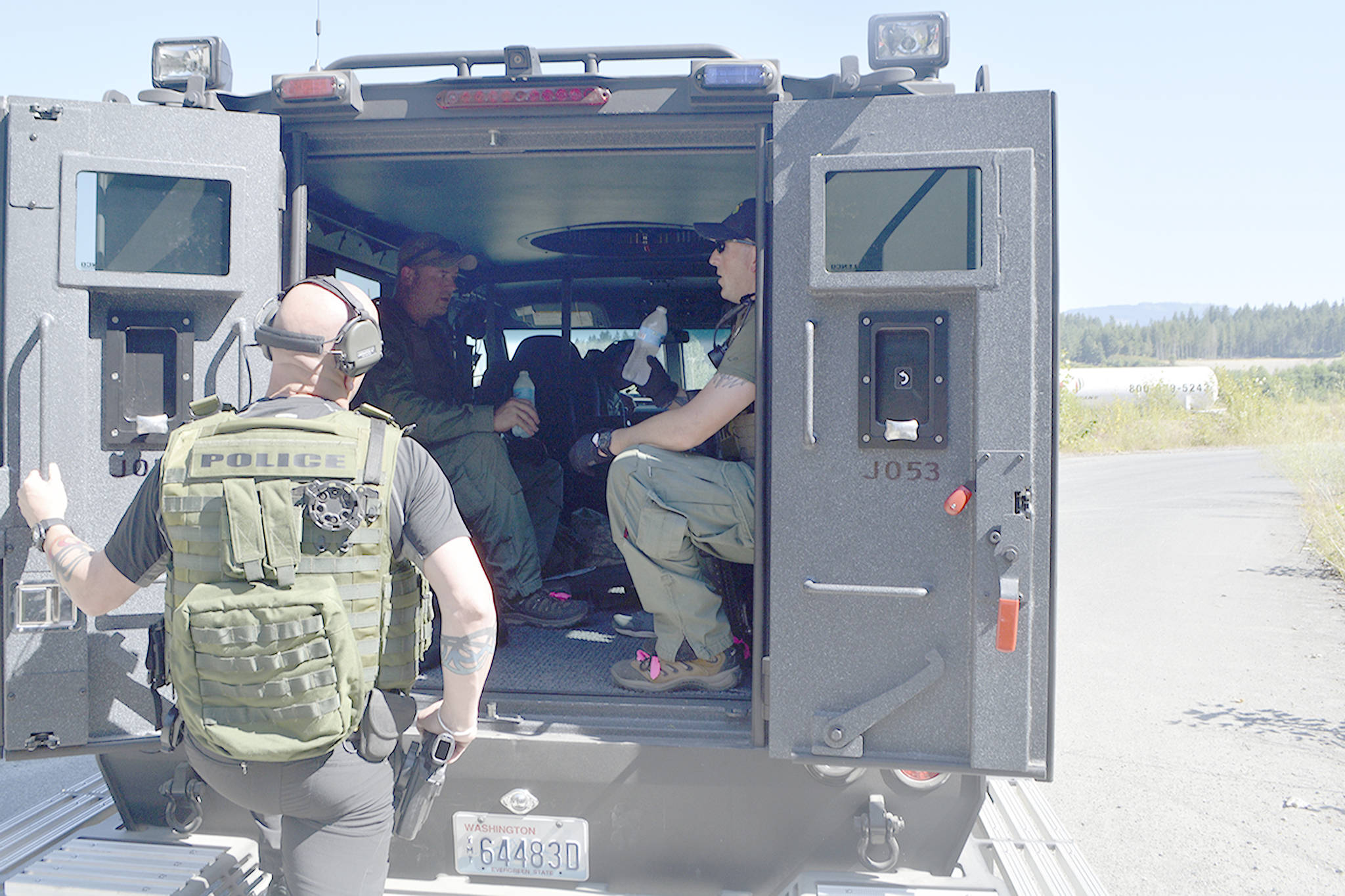 Negotiators got into position with the help of the department’s new Bearcat. It provided a bullet-proof shield as they moved into place 300 feet from the mobile home set in the Cadman rock quarry off Highway 9.