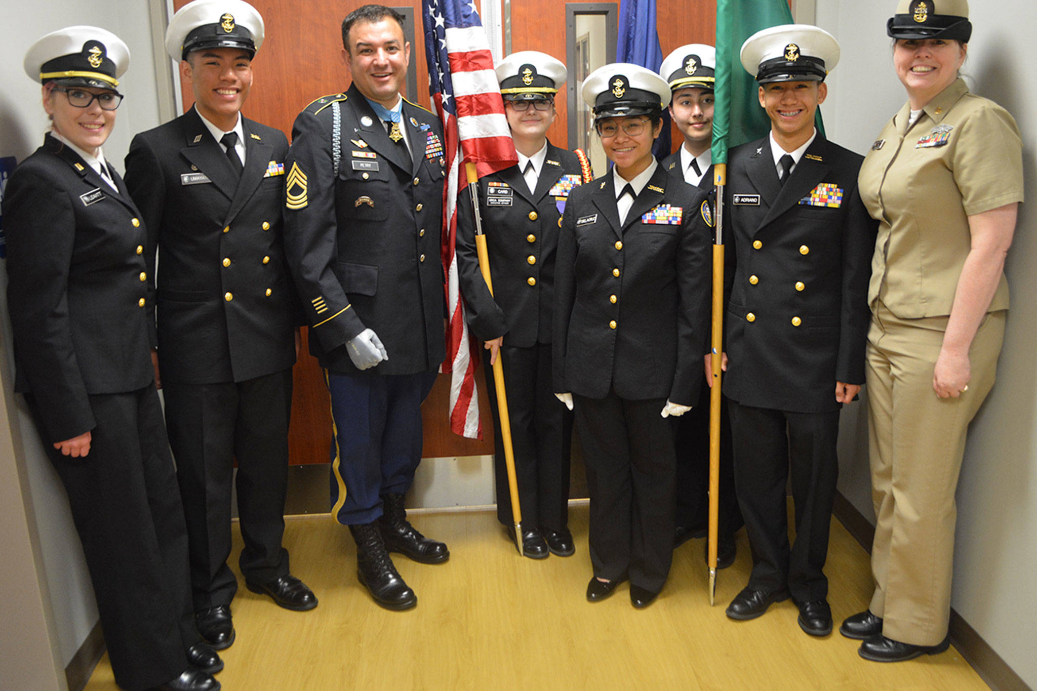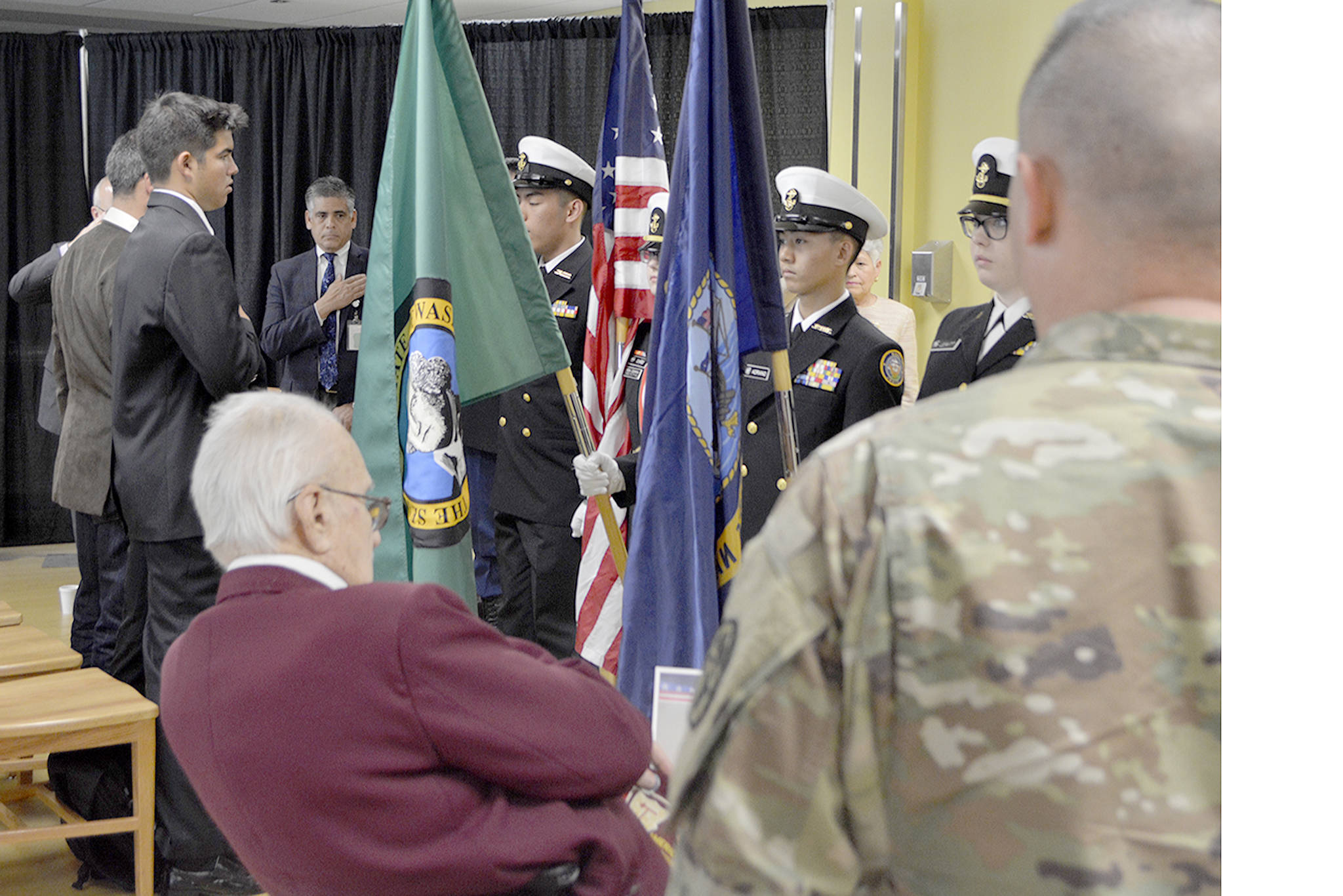 Editor’s note: The Marysville-Pilchuck Navy Junior ROTC presented the colors at the event. A few of the speakers applauded the cadets, especially Angela Delacruz, who sang the “Star Spangled Banner.”