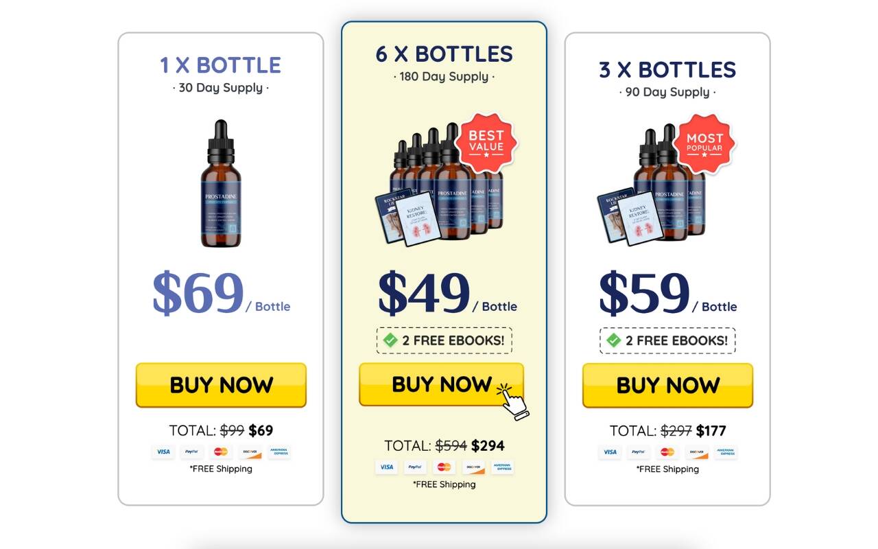 Prostadine offers a tiered pricing structure to cater to different customer needs. For a single bottle, providing a 30-day supply, the regular price is $99. However, customers can enjoy a discounted rate of $69 per bottle, resulting in significant savings. Additionally, all orders come with the added benefit of free shipping, enhancing the overall value proposition for customers.