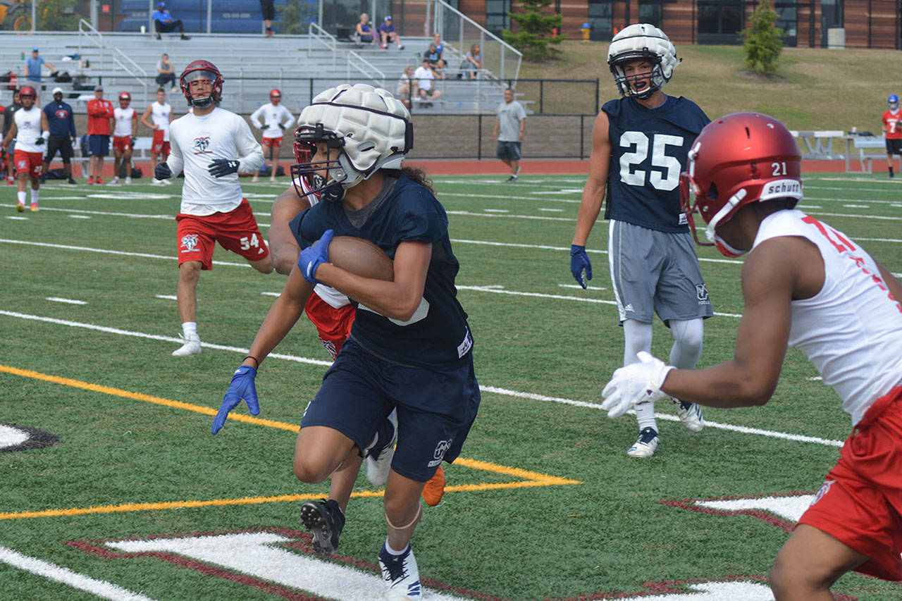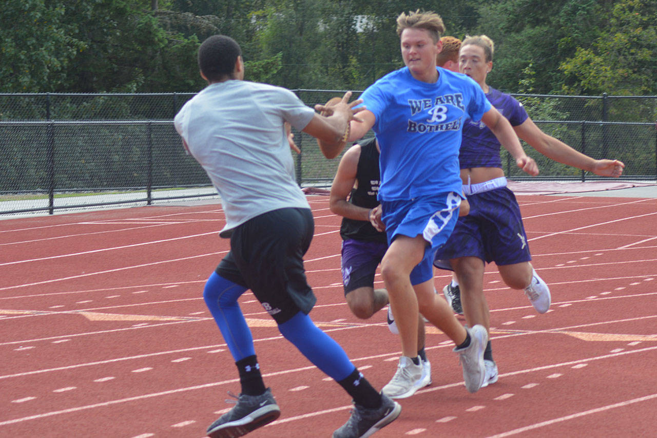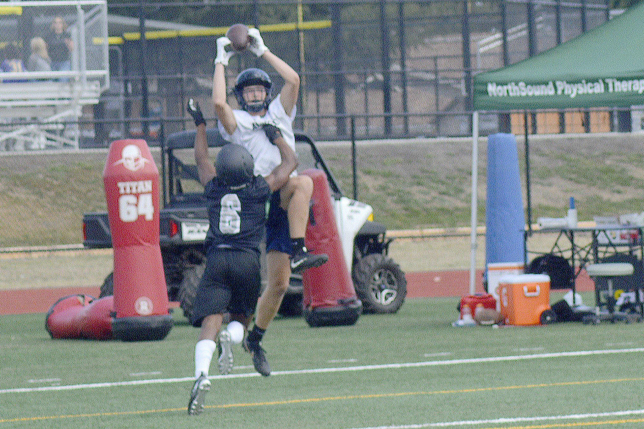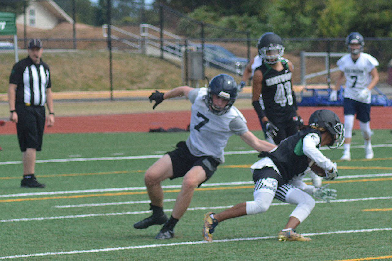 Games consisted of two 17-minute running-clock halves with the ball placed on the 40-yard line each possession. Players were ruled down by one-hand touch, and quarterbacks had four alligators to throw the ball. Lineman also got to compete at the event – five players in the bench press; two-man sled push and pull; five-man tire flip relay; six-man sled drive; five-man tug of war; and 4 by 100 meter relay. North Creek won the lineman challenge, but Lakewood was fourth, winning the tire flip contest. “That’s probably what we’re most proud of,” Teeter said.