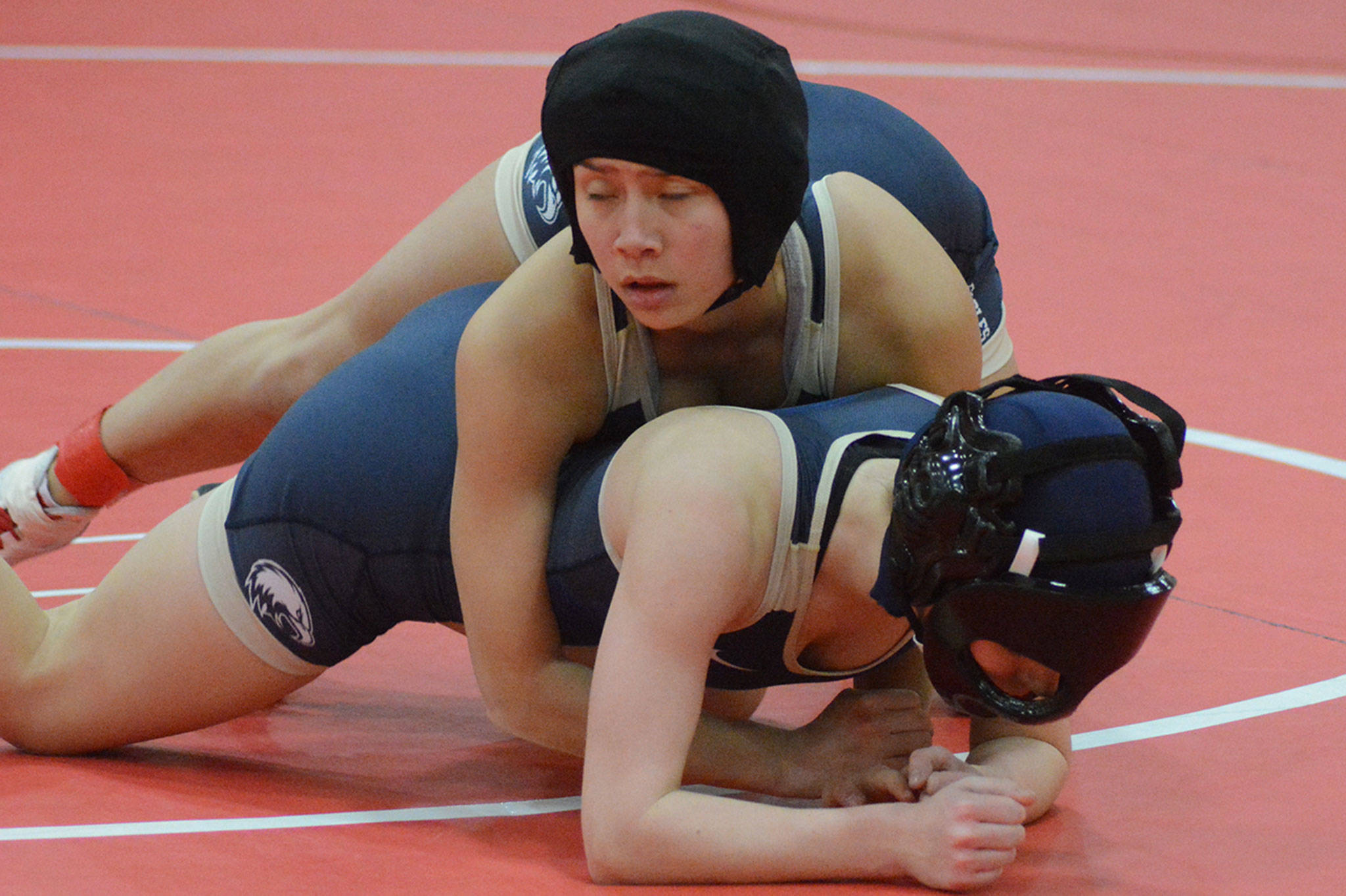 At 110 pounds, two Arlington girls battled head to head. Vivian Potong ended up beating fellow Eagle Taylor Chapman 25-10.