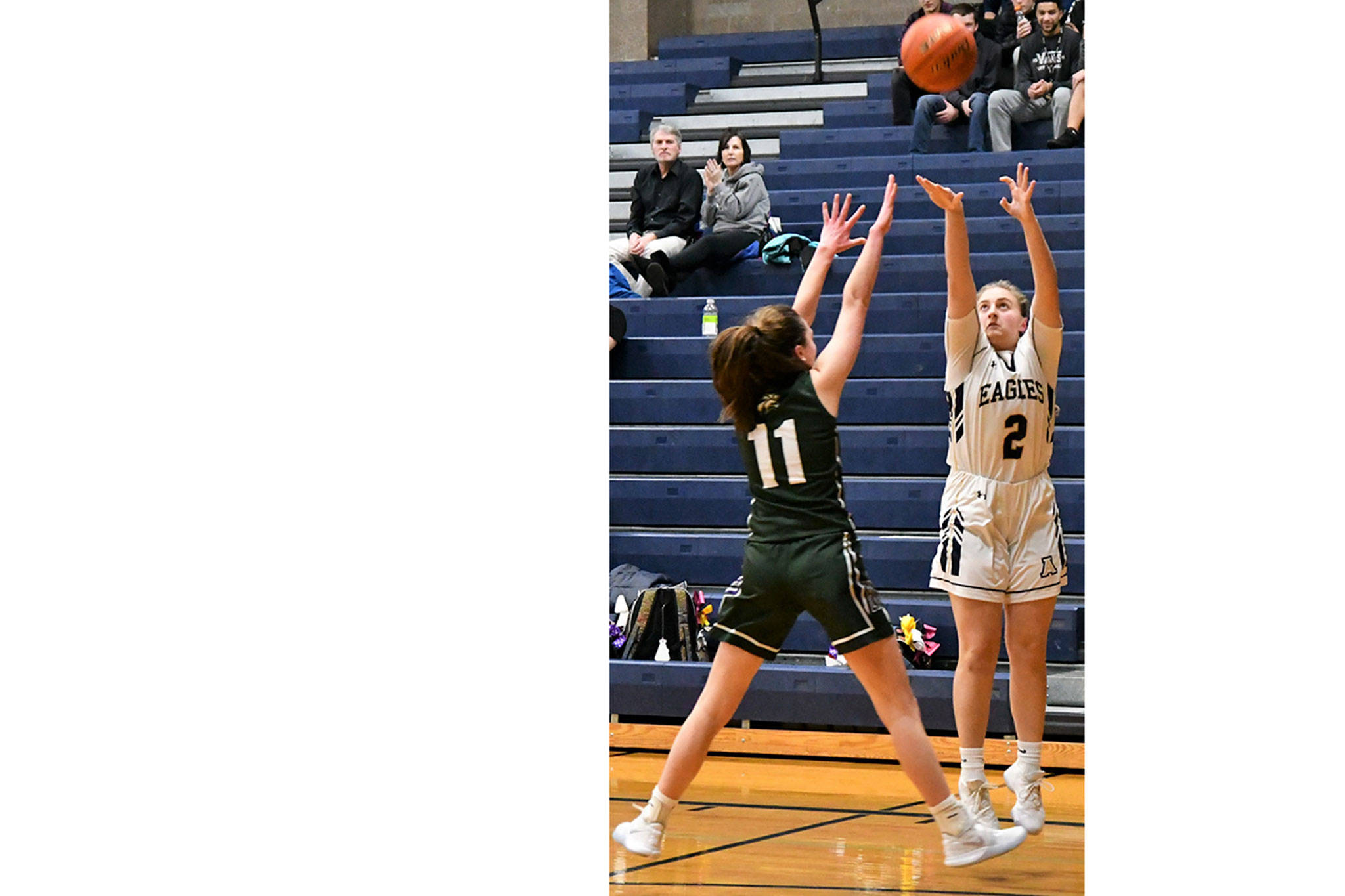 ARLINGTON – Abby Schwark hit the go-ahead bucket with 30 seconds remaining as the Eagles outlasted Edmonds-Woodway 61-60 in a back-and-forth battle between Wesco 3A title contenders Thursday night.