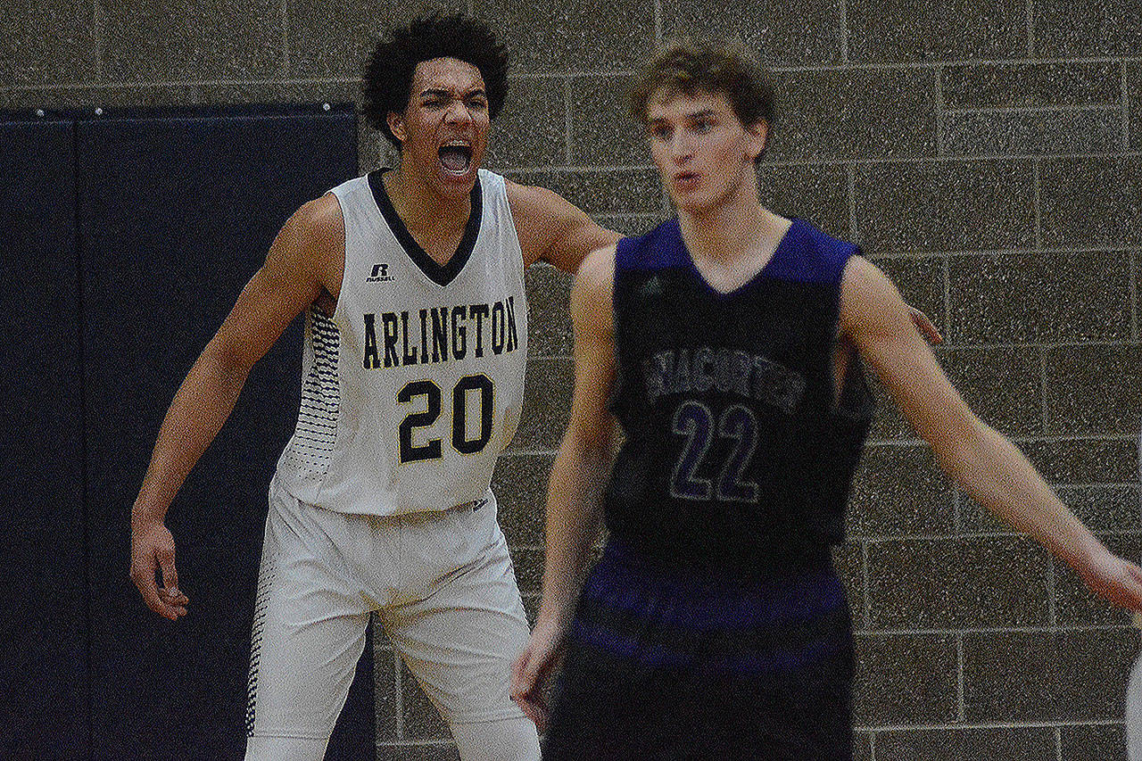 Anthony Whitis, the recently named All-Wesco QB, had a double-double with 26 points and 10 rebounds to lead Arlington to a 63-42 season-opening win over Anacortes Friday.