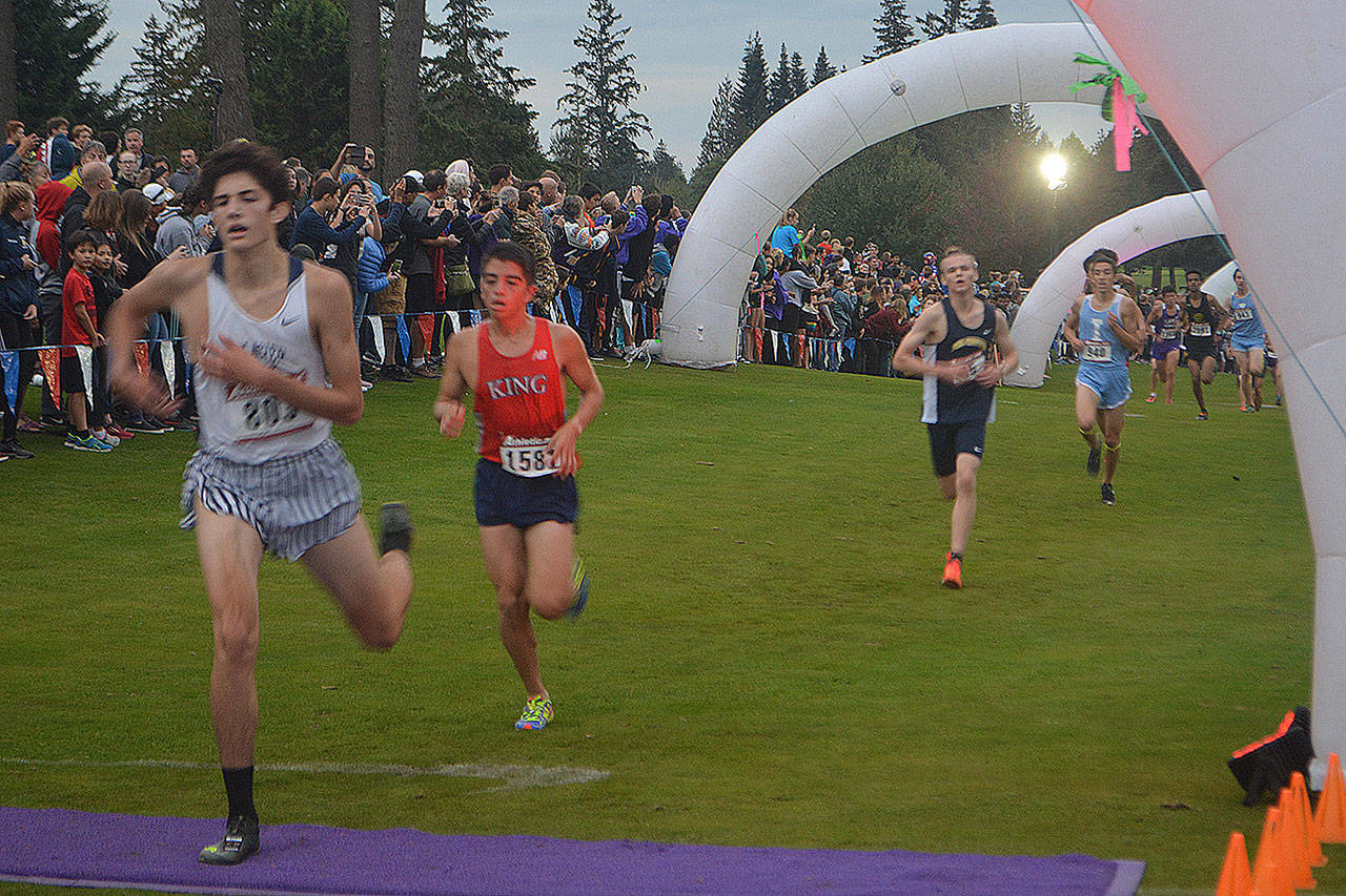 Luke Houser of Woodinville was the overall winner in 15 minutes, 32 seconds. Loftis’s time was 16:12. His teammates were not far behind: sophomore Quincy Fankhauser 19th in 16:18; senior Favian Villanueva 34th in 16:29; freshman Aiden Emerson 44th in 16:40; sophomore Vincent Loftis 52nd in 16:47; senior Blake Landry 62nd in 16:53; and junior Chance Pearston 77th in 17:06.