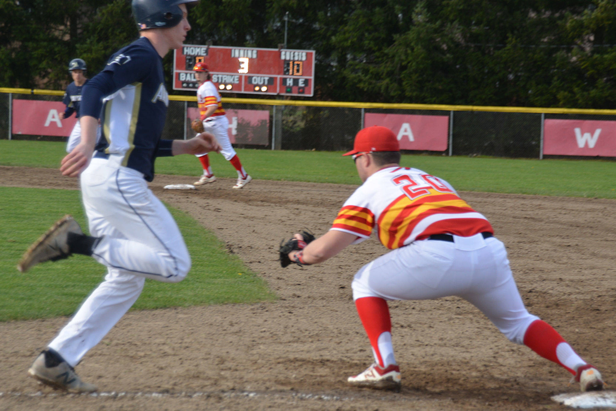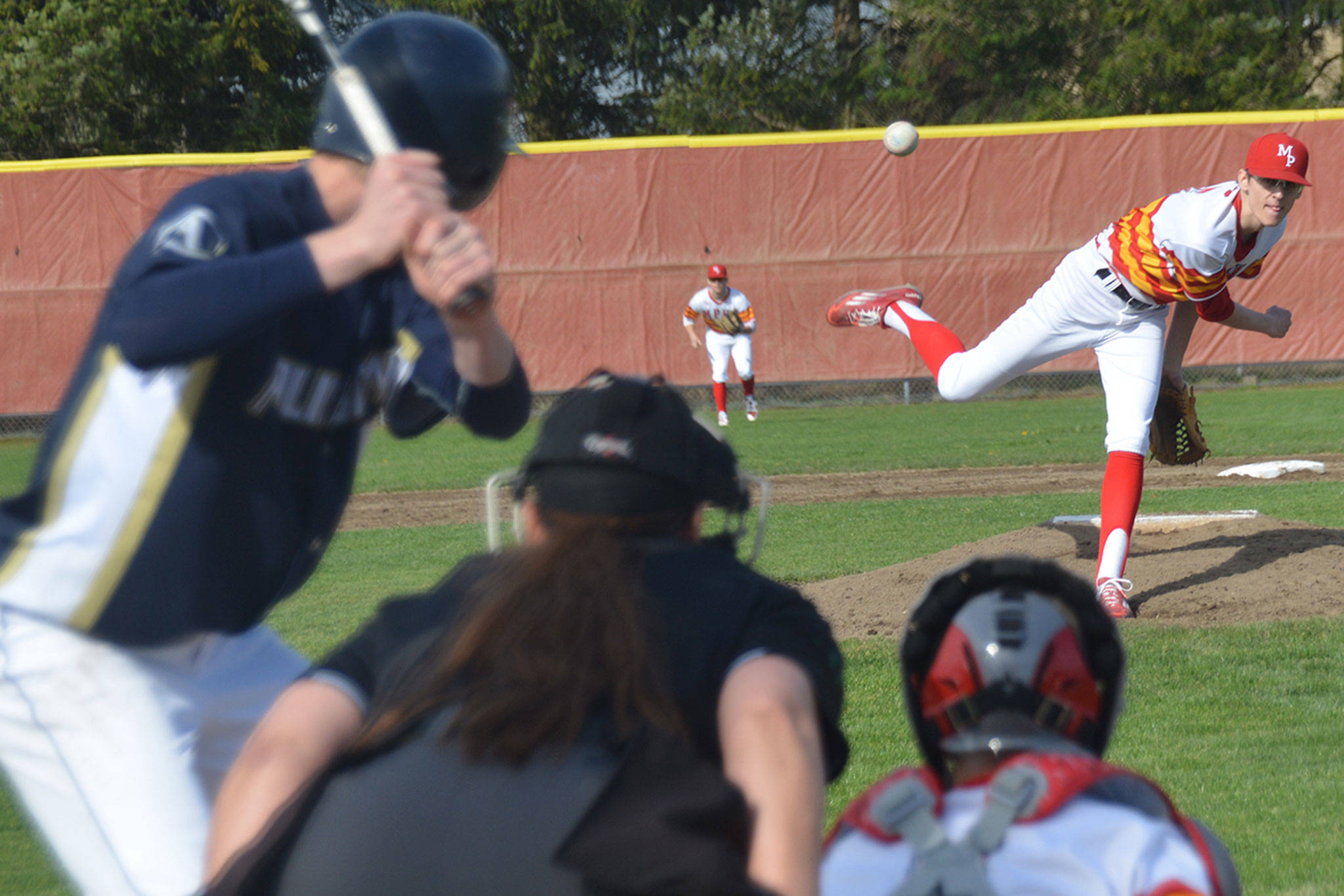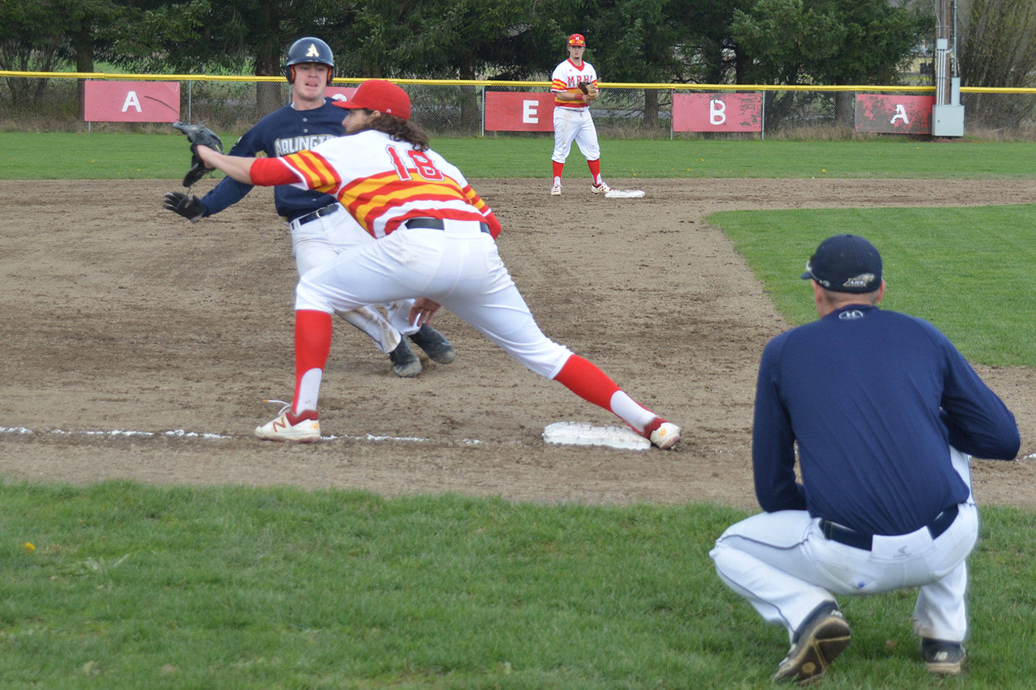 Eric Anderson of M-P and Cameron Smith of Arlington were locked in a pitchers’ duel. Both pitched the entire game, Anderson striking out eight and Smith six.