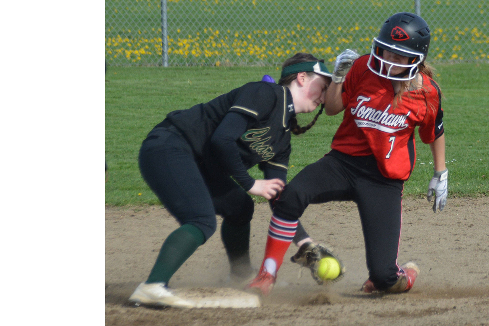 The Arlington Eagles gave the home team Marysville-Pilchuck Tomahawks an old-fashioned whipping, winning 20-5. M-P was never in the game, as Eagle pitcher sophomore Owen Bishop owned them from the start. His fastball flew by them, while his curve froze them at the plate.