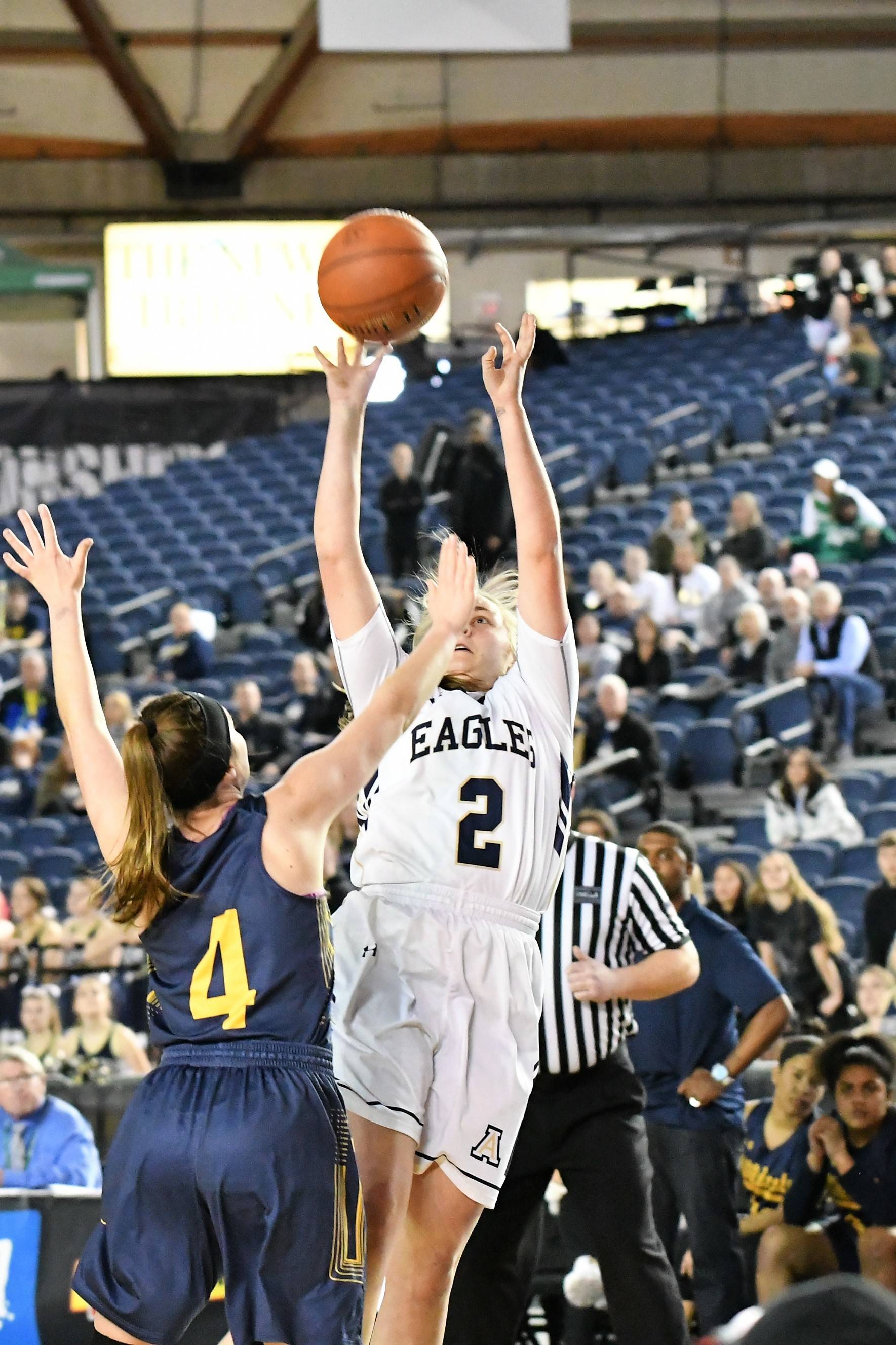 West Seattle did post of its damage in the paint, outscoring the Eagles 28-16. Arlington didn’t have its best shooting night, hitting on just 13 of 51 shots, and they were only 4 of 26 from 3-point land. Keira Marsh was just 2-for-11 from the field and 1-for-8 behind the arc. Stupey made 9 of 10 free throws to help in a 15-for-21 team effort.