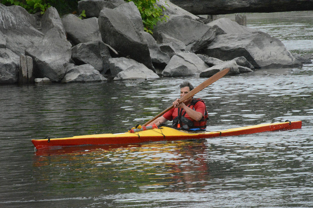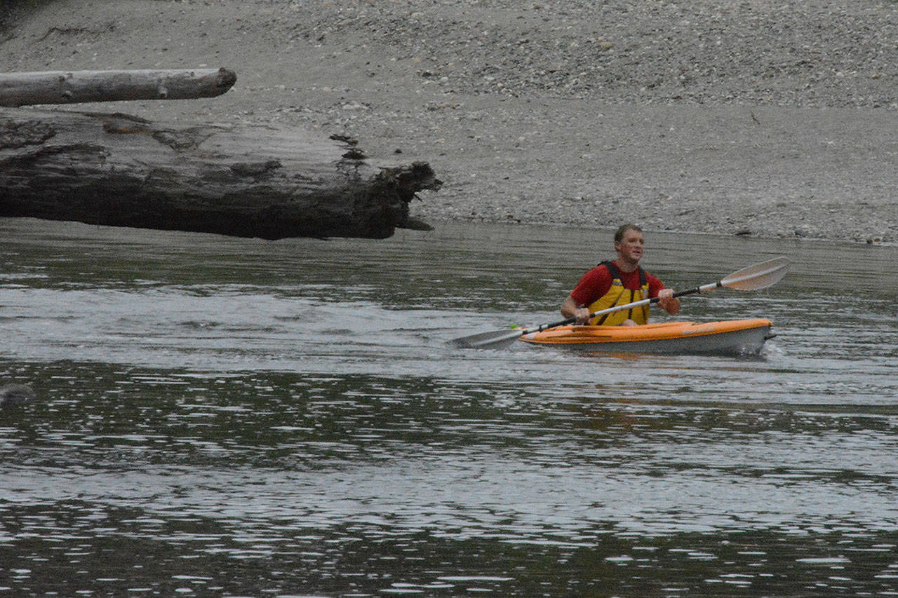 The triathlon started with an 8-mile bike ride, followed by a 6-mile kayak or canoe race down the Stillaguamish River, and ending with a 5-kilometer run. Some contestants team up while others do it all on their own.