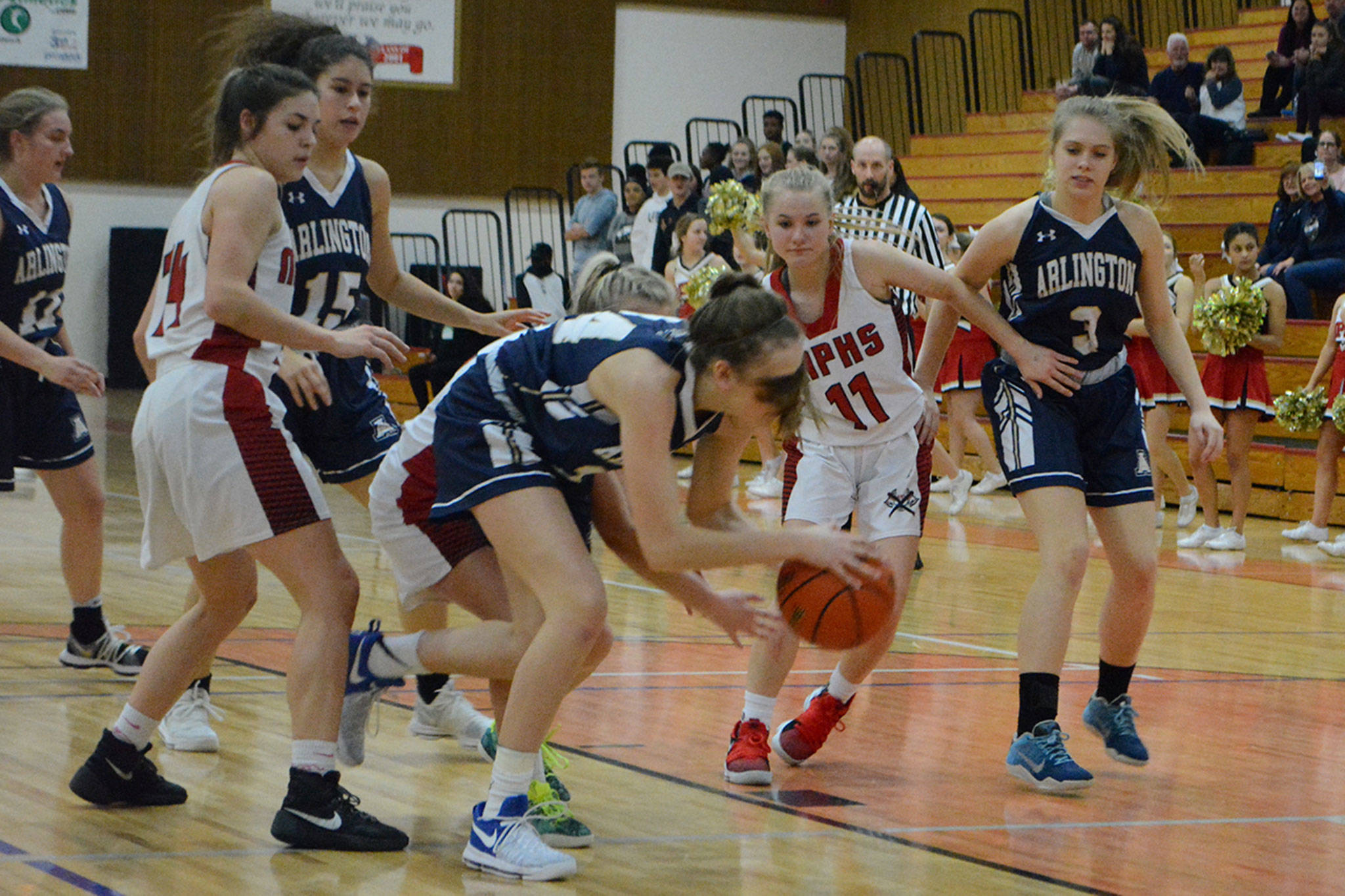 The Arlington Eagle girls have won six of their last eight games, defeating Marysville-Pilchuck 65-14 Wednesday night.