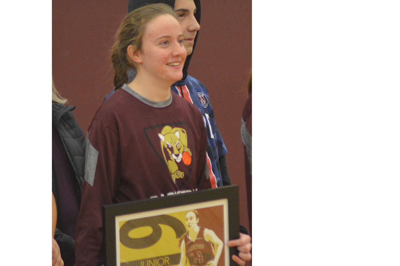 She was honored Tuesday night, along with seniors Nicole Miller, Malia Ryden, Riley Molloy and Shealey Miller in their last home game.
