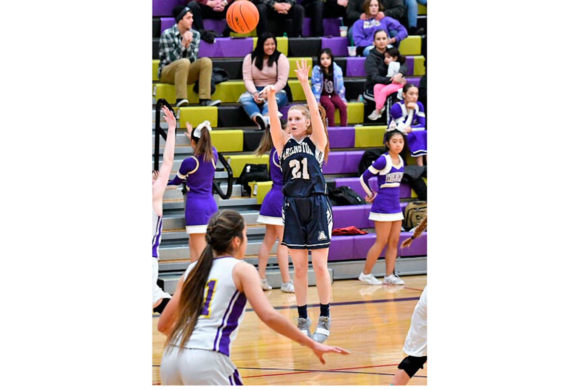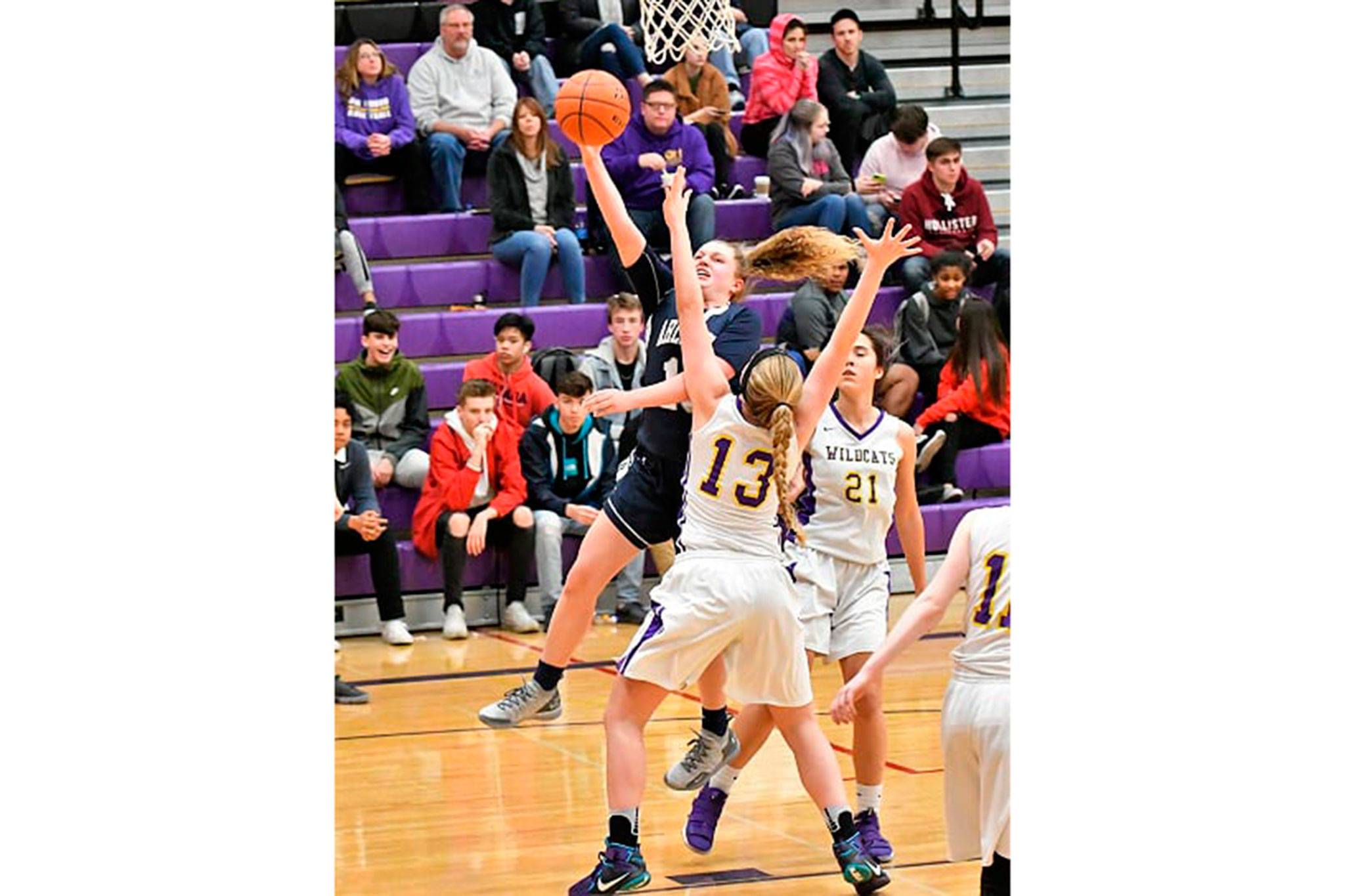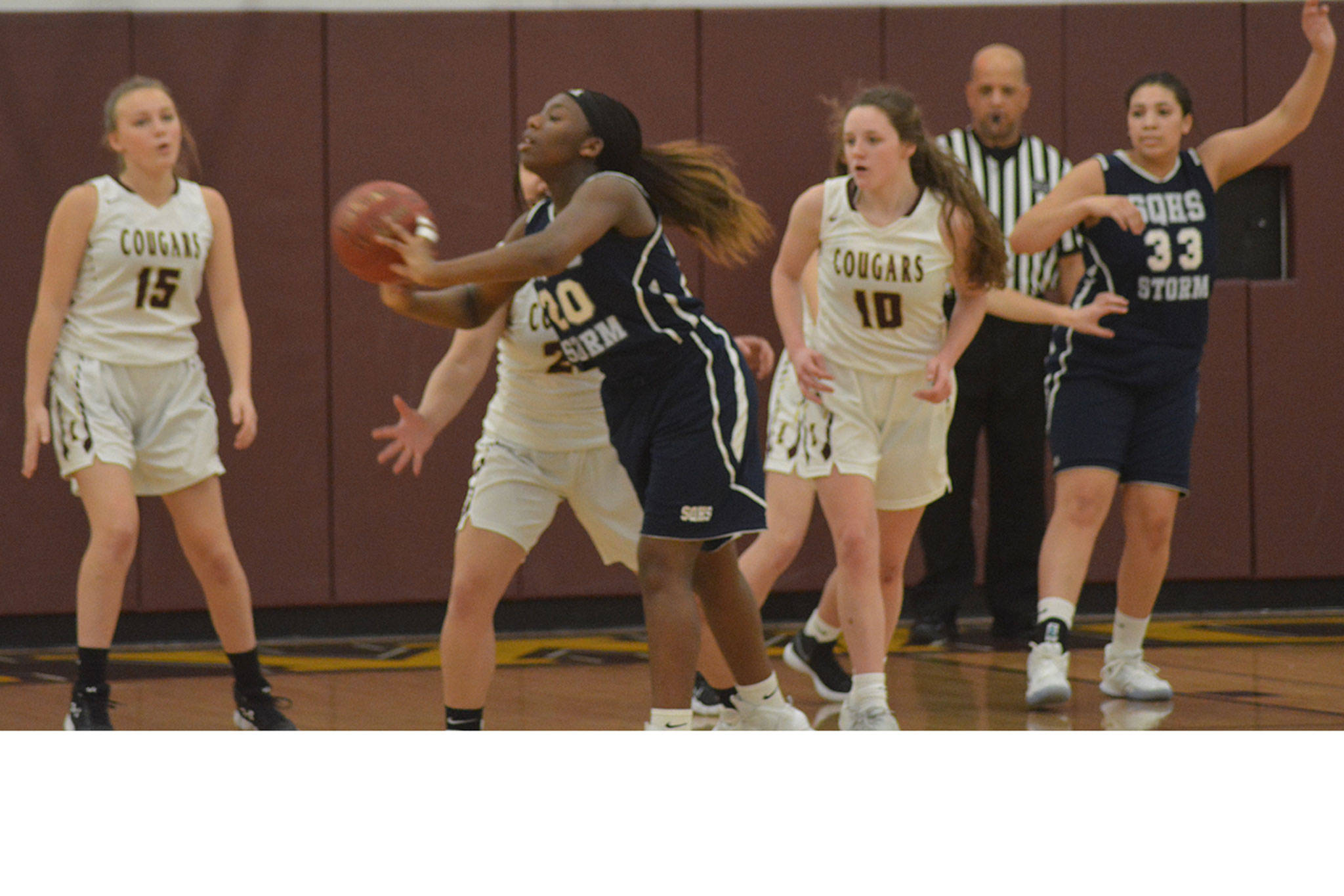 Her importance was evident in the first few minutes of the game against Squalicum. Not only did she jump center, she also got their first rebound and went coast-to-coast for a layup. She was fouled and converted the free throw to give the home team a short-lived 3-0 lead. A little later she blocked a shot. By the end of the quarter the Storm led 22-8, but Frechilla had five of the Cougar points.