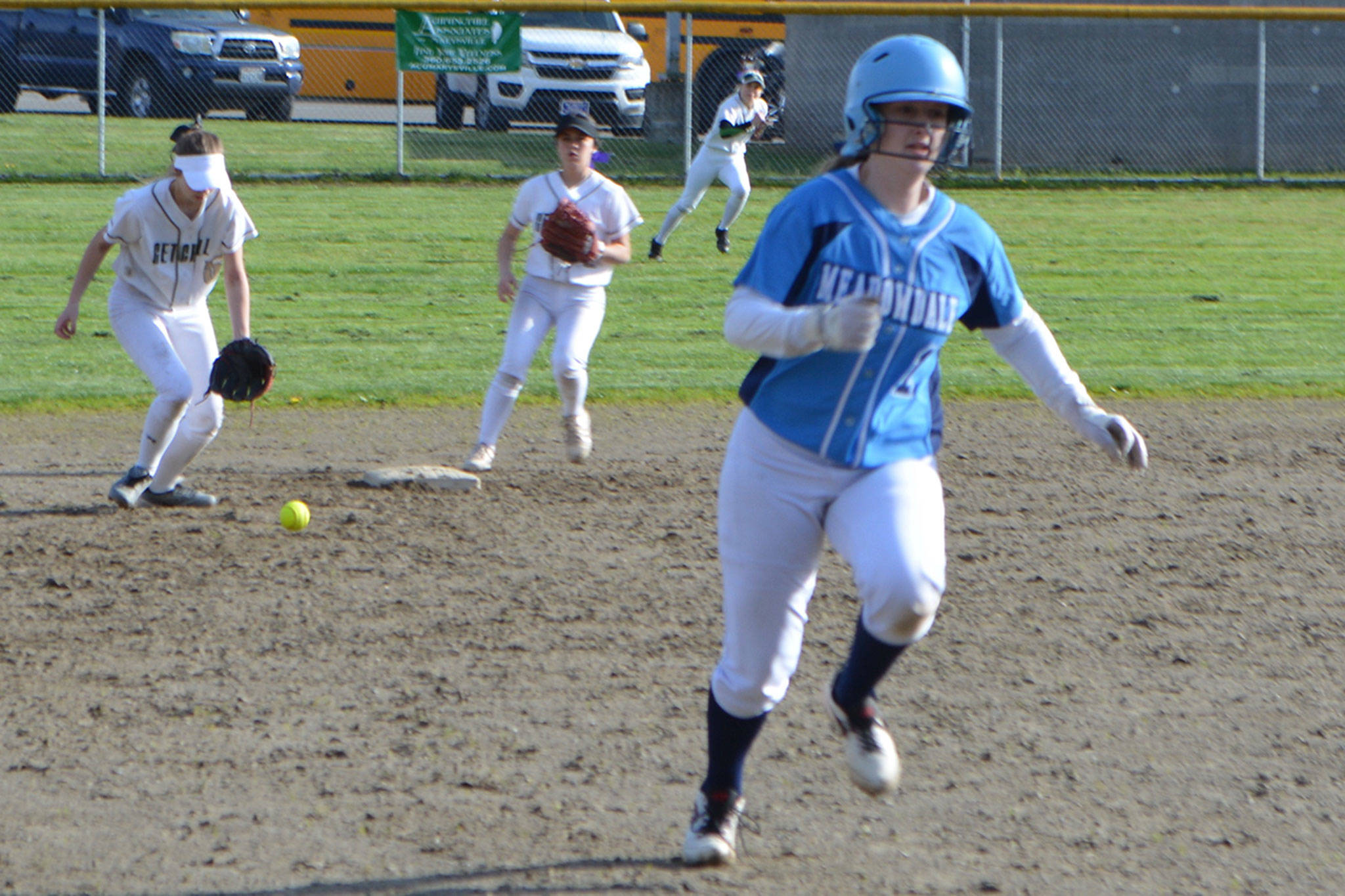 In the top of the sixth, two outfield errors and one in the infield led to three runs for the visitors. MG pitcher Brionna Palm had shut down Meadowdale to that point. A single tied it up and another single put the visitors ahead 5-4. It could have been worse but a double play help MG get out of the inning.