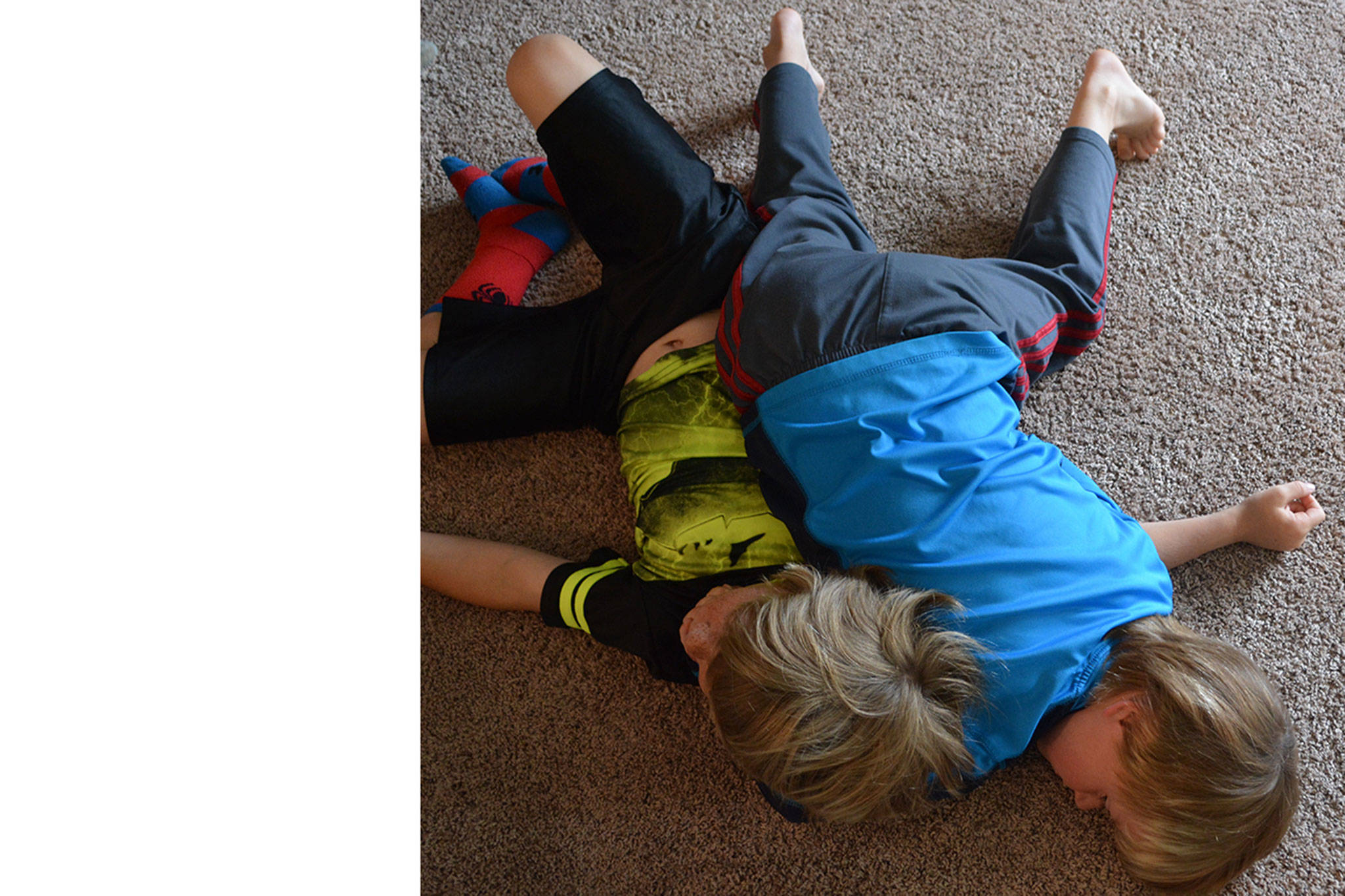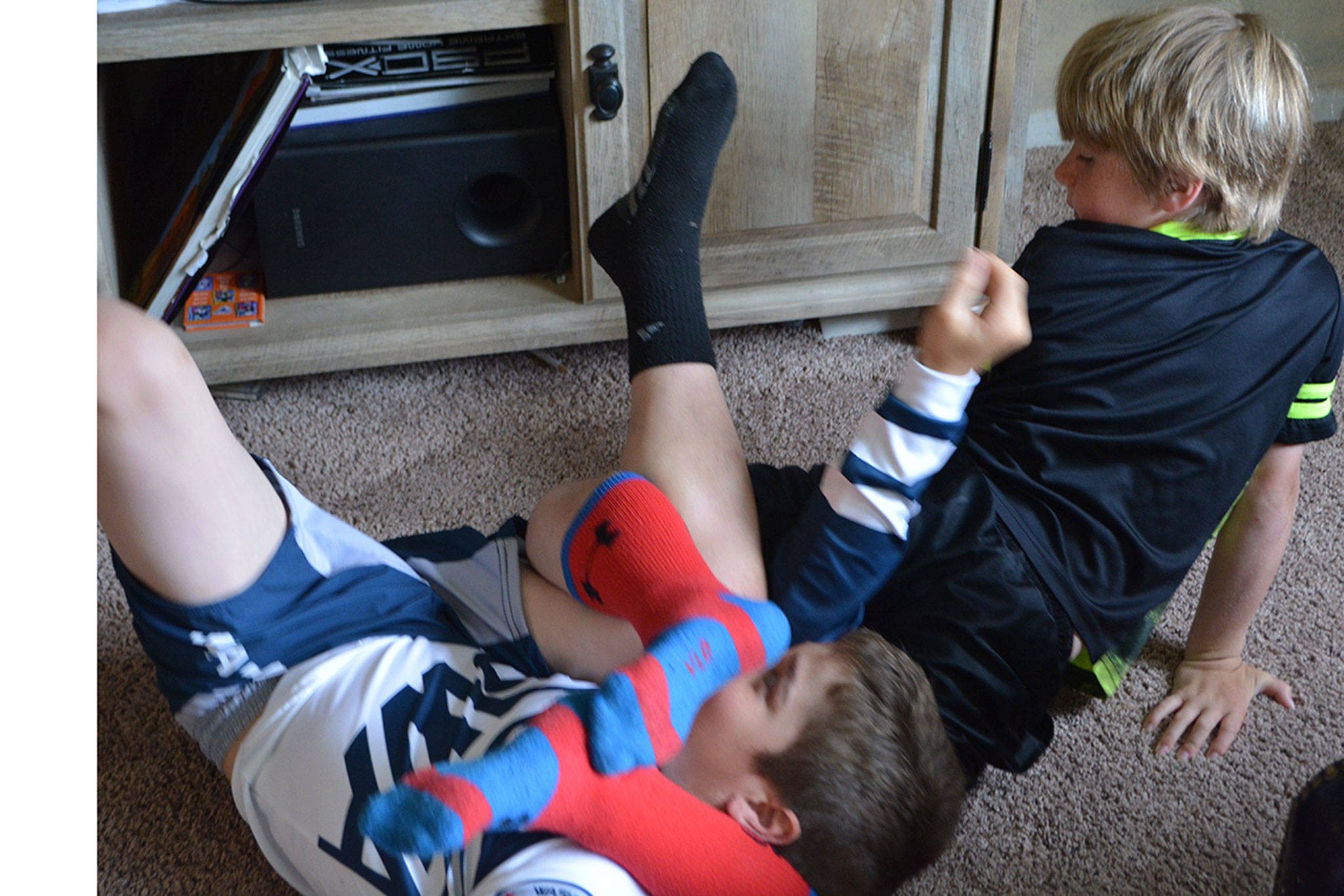 They don’t have a gym in their home so they are often rumbling and tumbling about the living room. “They’ve destroyed this house,” dad said.