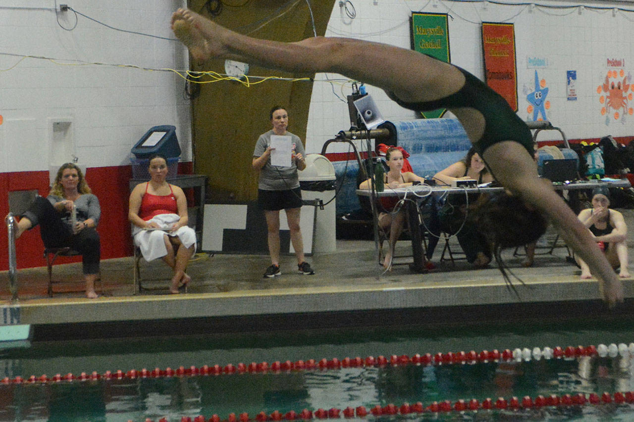 Winners for M-P included: 200 medley relay—Jennica Harper, Maddy Sulya, Katelyn Leary, Alexis Bennett in 2 minutes, 12 seconds. 200 freestyle—Sulya 2:30. 200 individual medley—Bennett 2:42. Winners for MG included: Diving—Lexi Kilbourn 262.55. points.