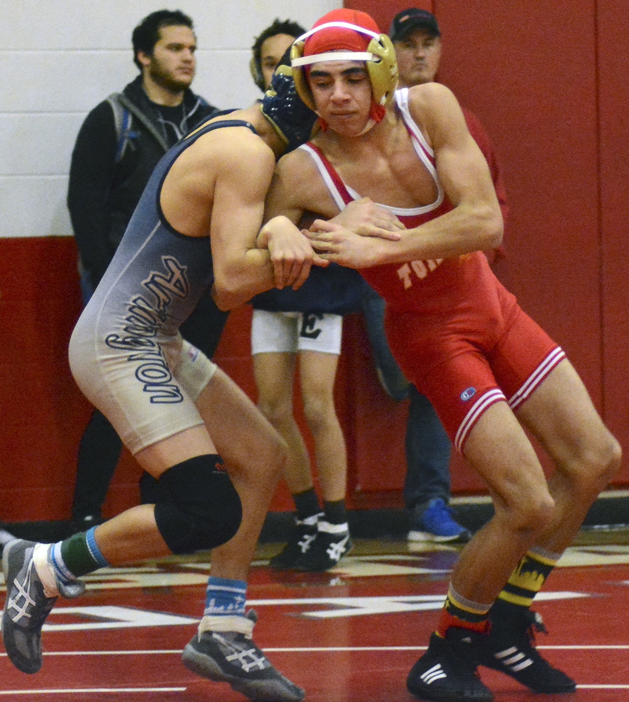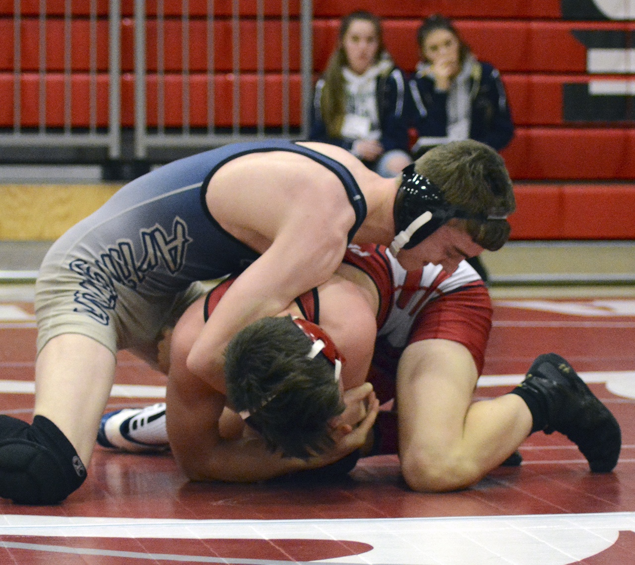 Local champions and second place bouts (both to regionals): 106—Cole Daurie (M-P) won by pin over Daniel Heiss (A) in one minute, two seconds; 113—Austin Davis (M-P) won by majority decision 20-11; 126—Christian Evanger (A) won by forfeit over Will Rush (A); 132—Baily Alvis (M-P), second; 138—Gavin Rork (A) won by dec. 6-1; Justin Collier (M-P), second. 160—Cooper McAuslan (A) won by injury default; 170—Keith Pablo (M-P) won by maj. dec. 9-1; 195—Colton Ferro (A) won by dec. 6-2; and 220—Charlie Diedrich (MG), second.