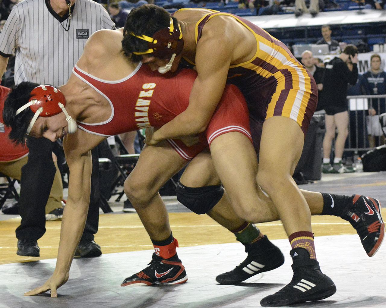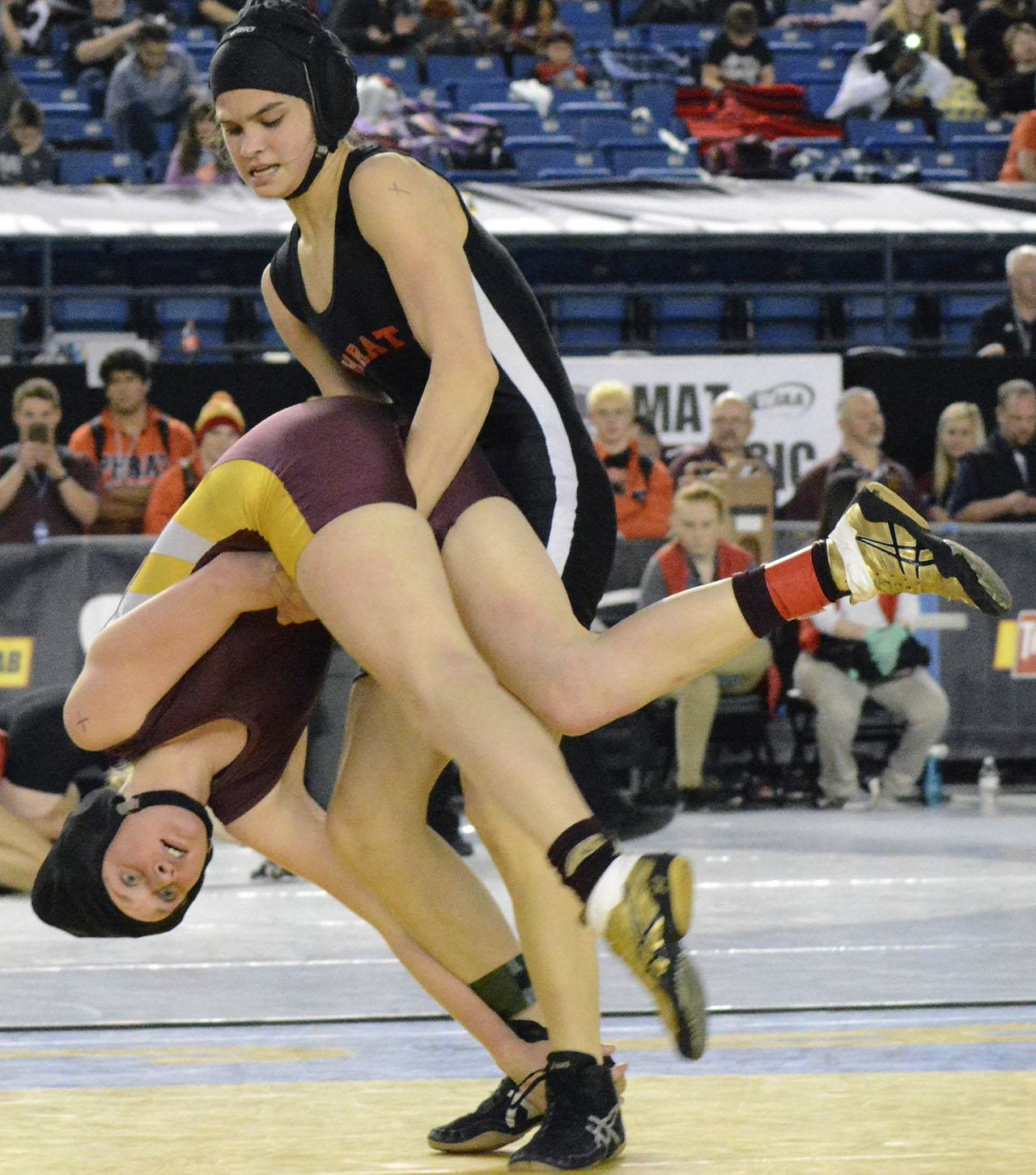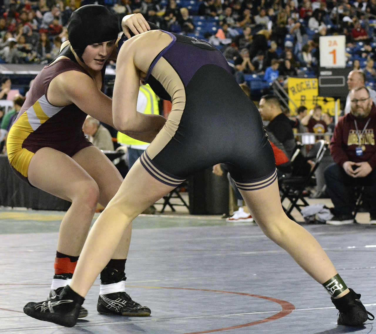 Marysville-Pilchuck’s boys team took 17th scoring 36.5 points. Senior Keith Pablo placed second in the 170-pound weight class, losing the championship match to Southridge senior Zayid Al-Ghani 5-2; and 106-pound junior Cole Daurie took fourth, losing the third-place match to Kelso sophomore Ben Hunnicutt 3-0.