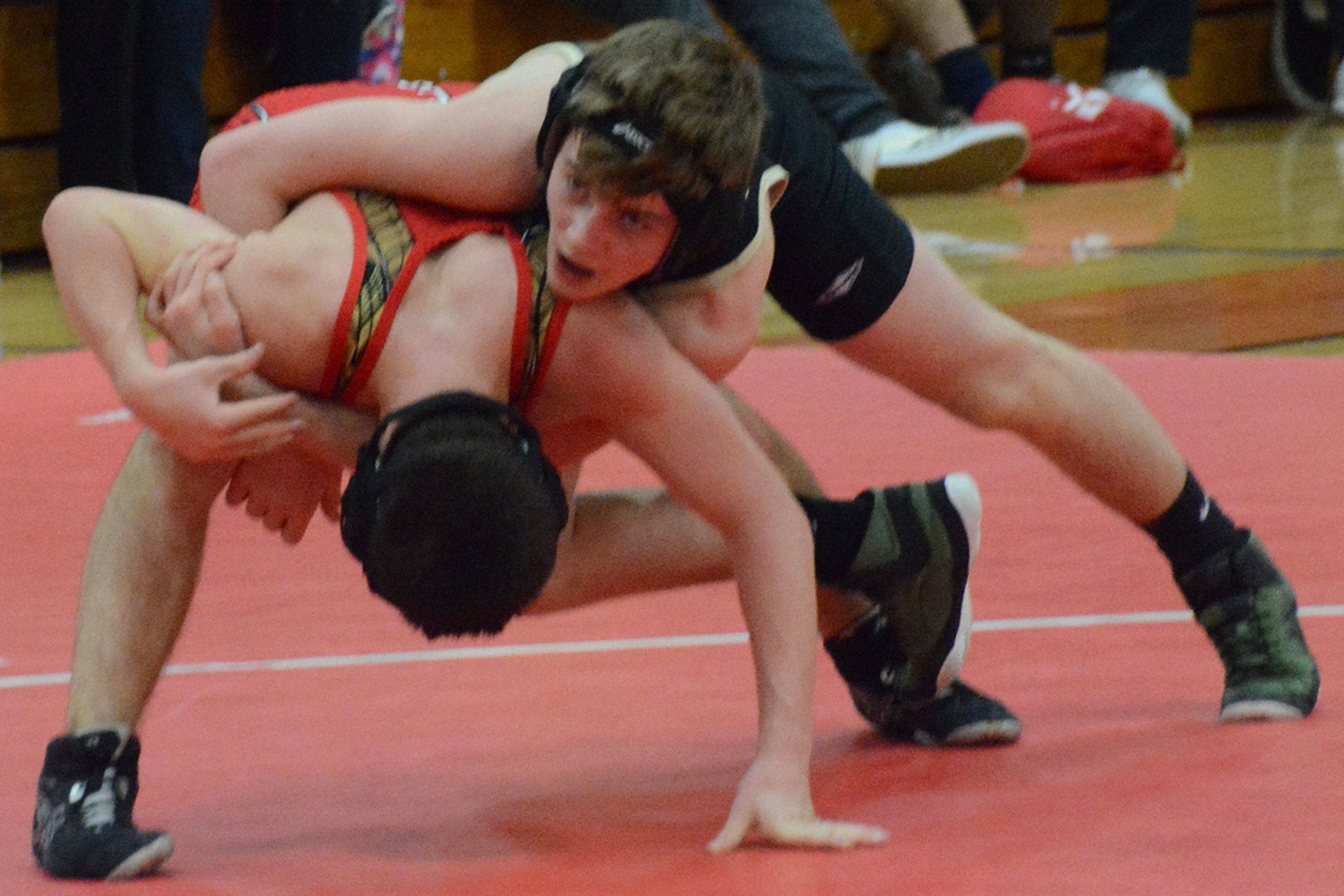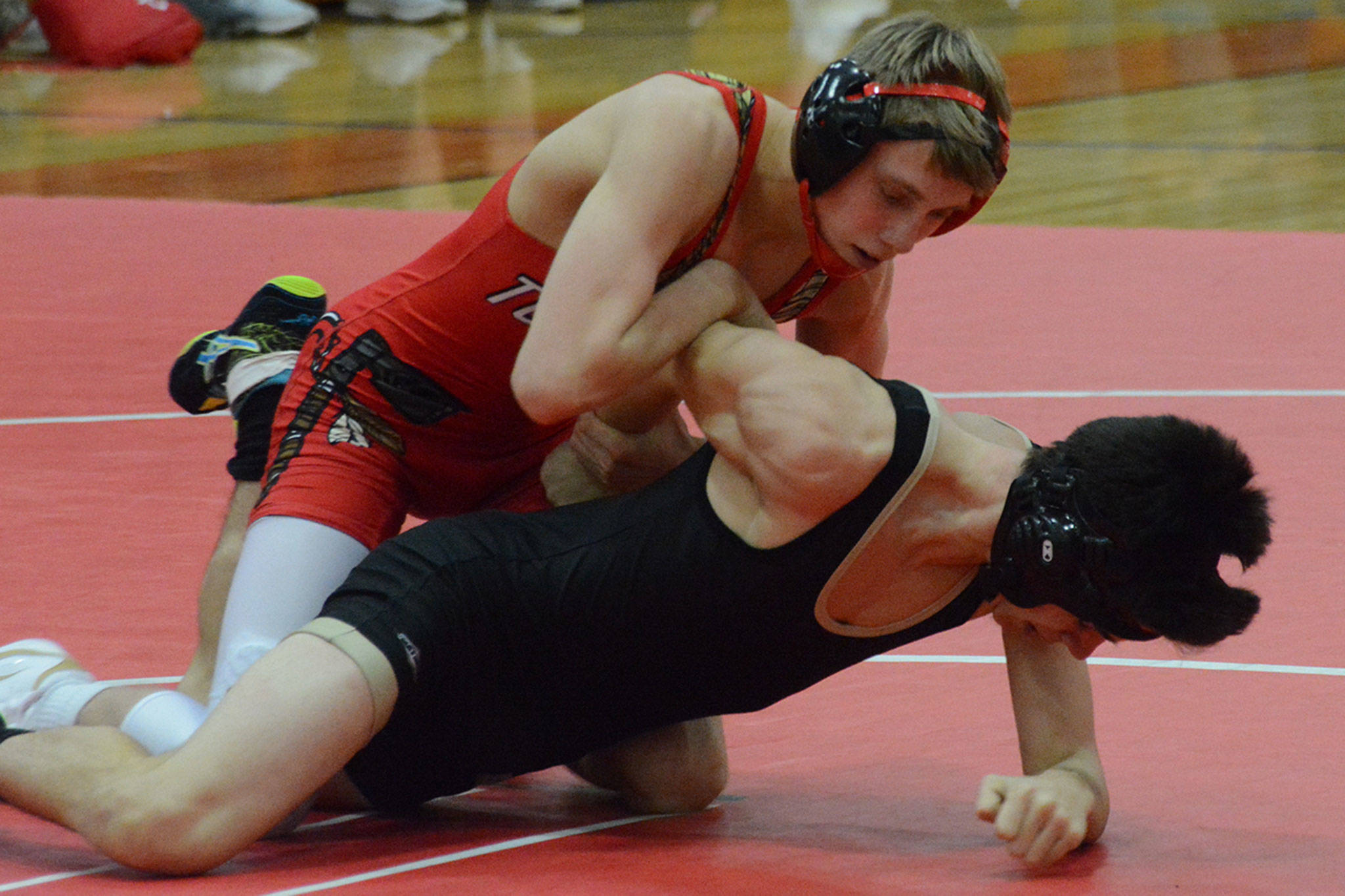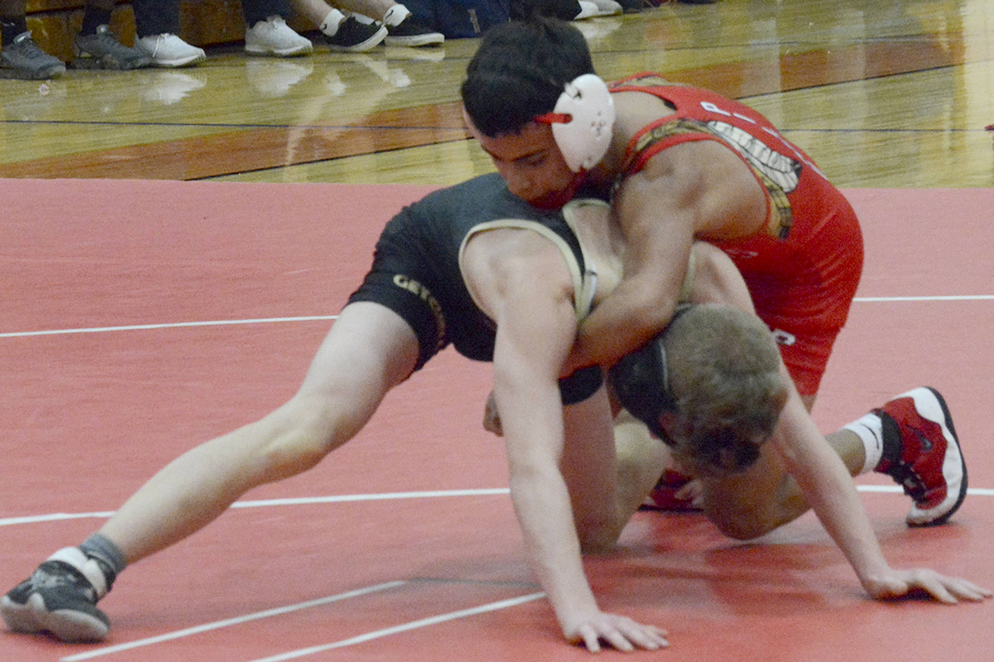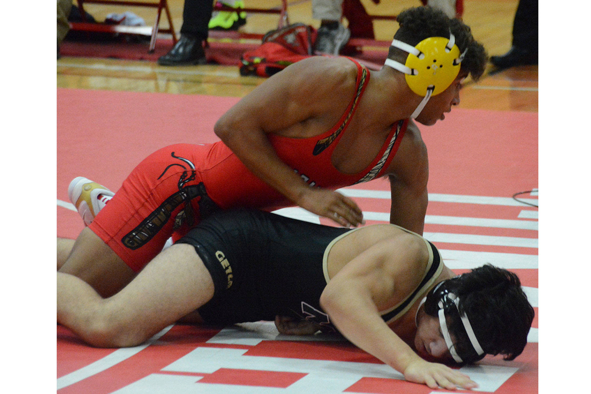 MARYSVILLE – Marysville Getchell jumped out to a 6-0 lead, but it was short-lived as Marysville—Pilchuck powered past the visiting Chargers in wrestling Thursday night 47-14.