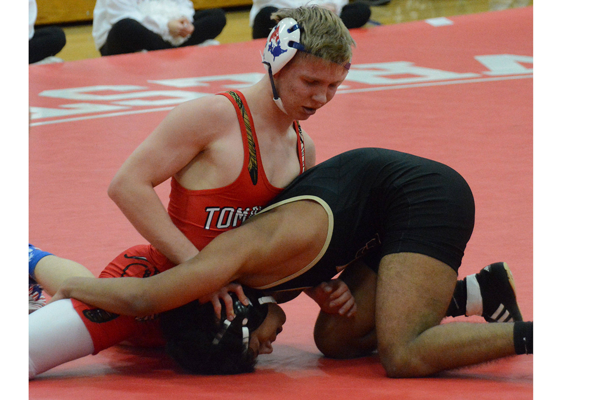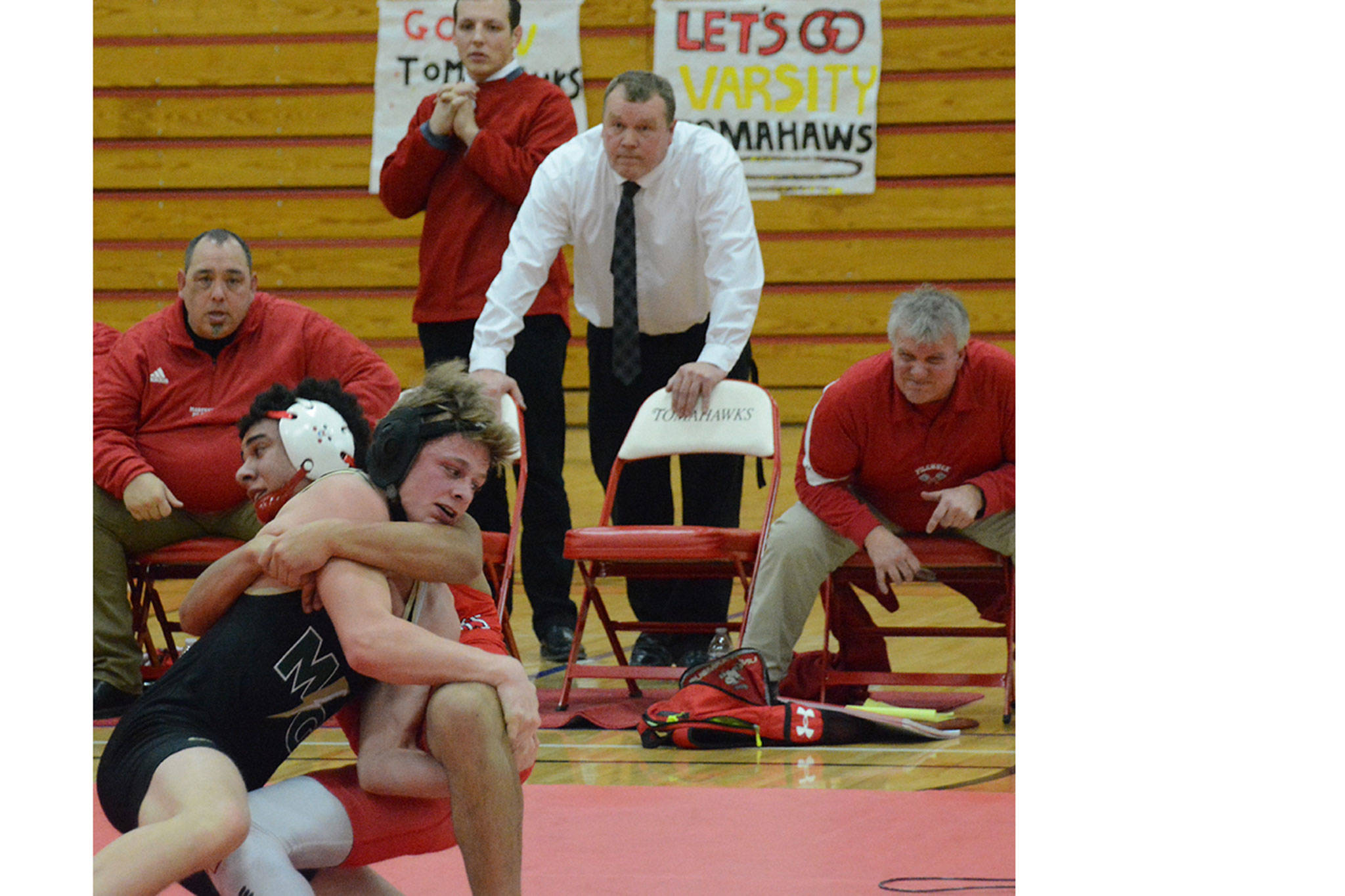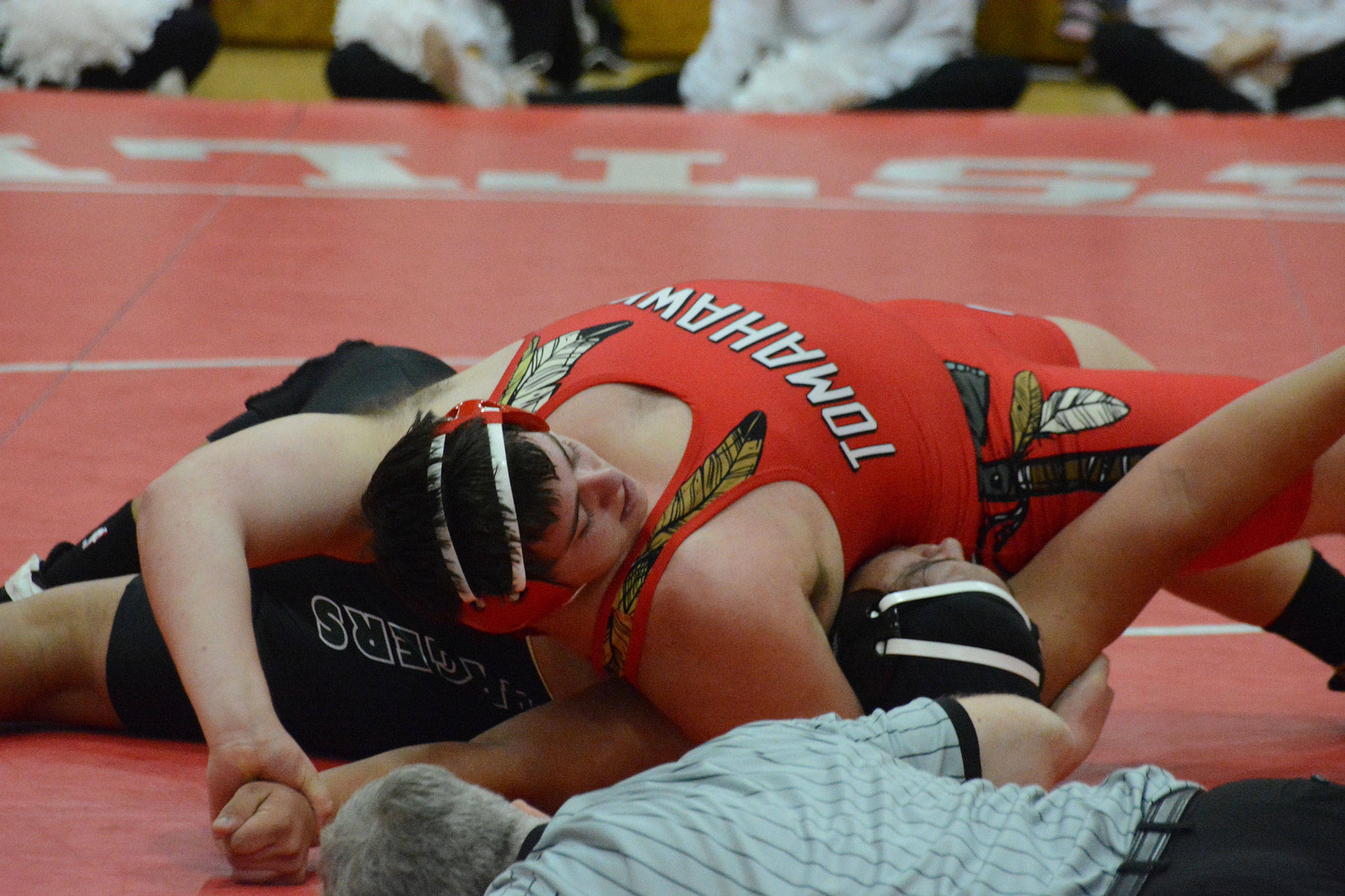 The Tomahawks won the next two matches with Tanner Lauzon pinning Taylor Herridge in 3 minutes, 33 seconds at 126 pounds, and junior Austin Davis winning a major decision over Miguel Ramirez-Garcia 14-6.