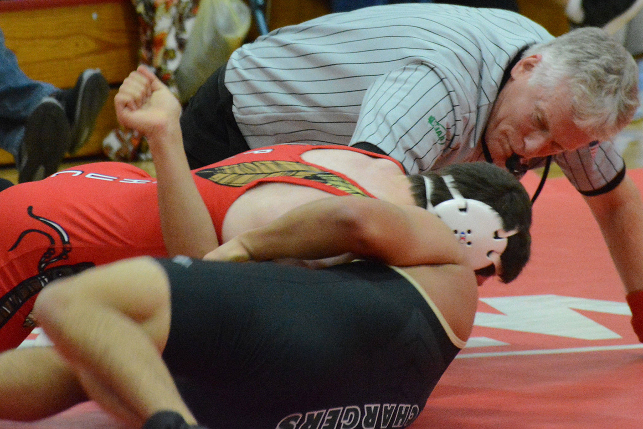 Cheron Smith finally got MG back on the board, pinning Kamiakin Craig in 3:38 at 220 pounds.