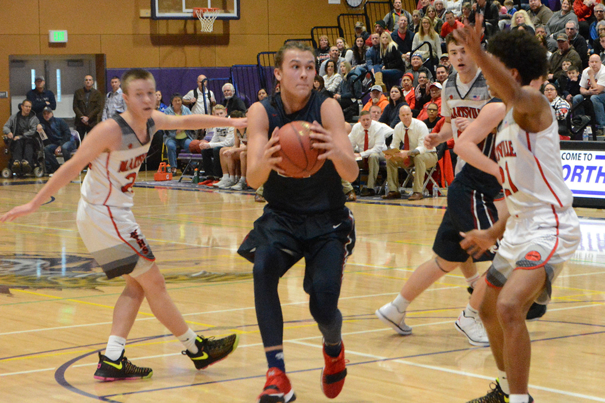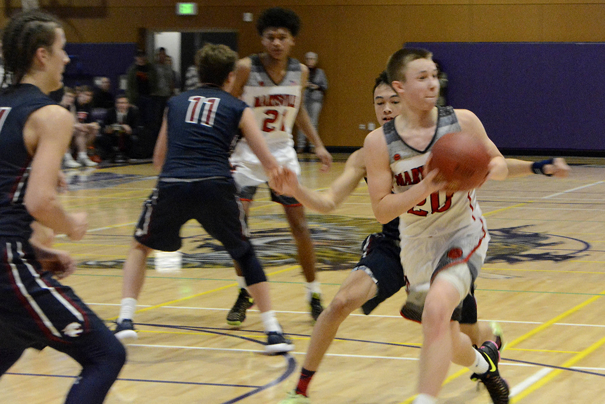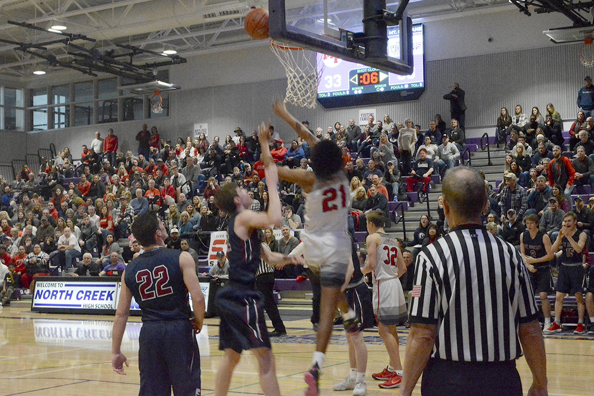 RaeQuan Battle, M-P’s standout 6-5 junior guard, sank a 3, but that’s all M-P could score. Another huge play came when Wildcat Hattenburg missed two more free throws, but got his own rebound as Mount Spokane retained possession.