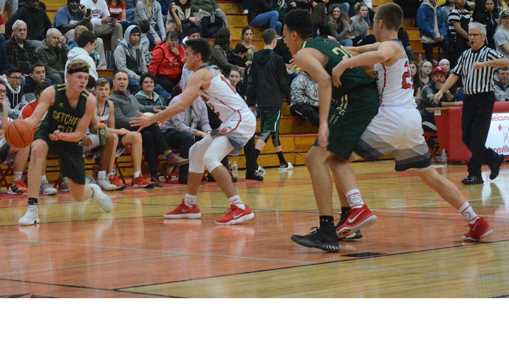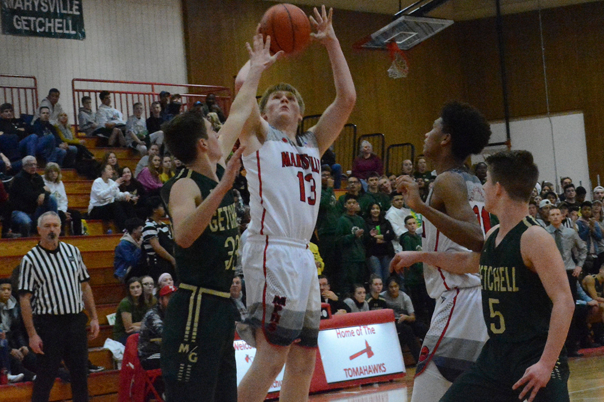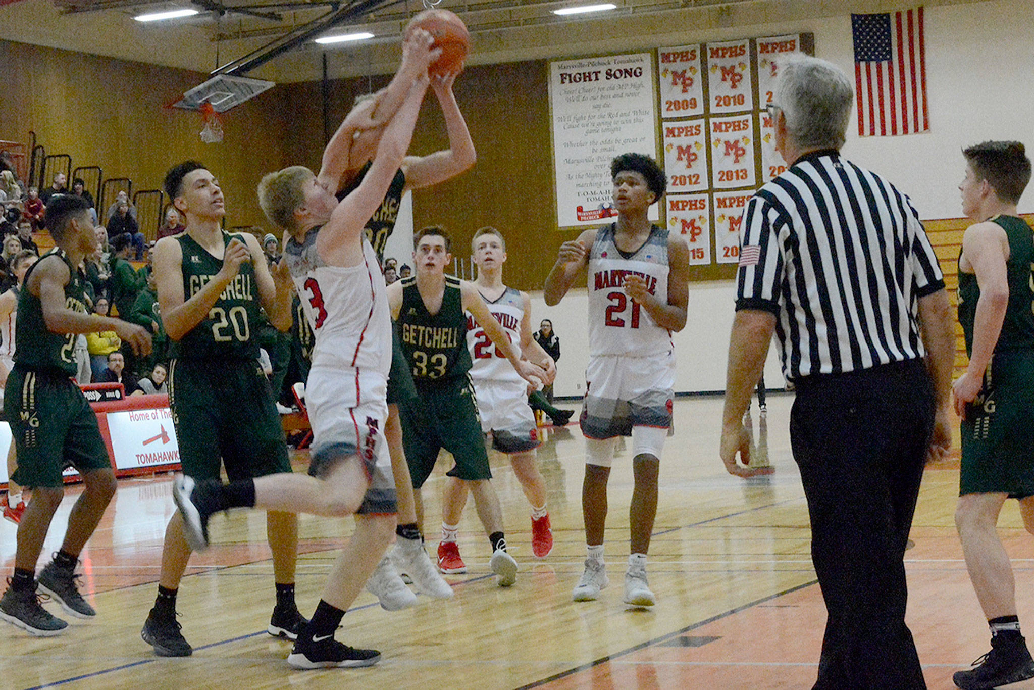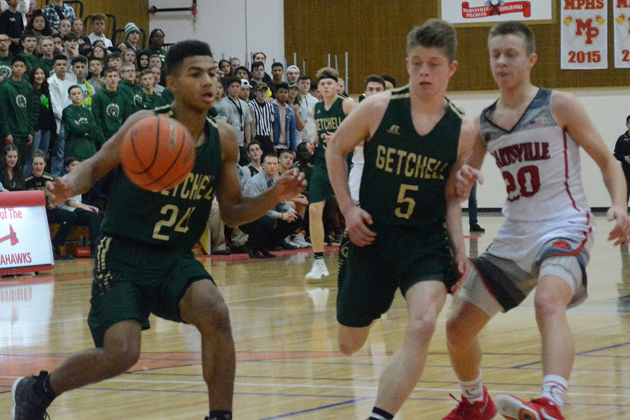 MARYSVILLE – Luke Dobler and Josiah Gould led Marysville-Pilchuck in beating crosstown rival Marysville Getchell in a high school boys basketball game Saturday 63-38.