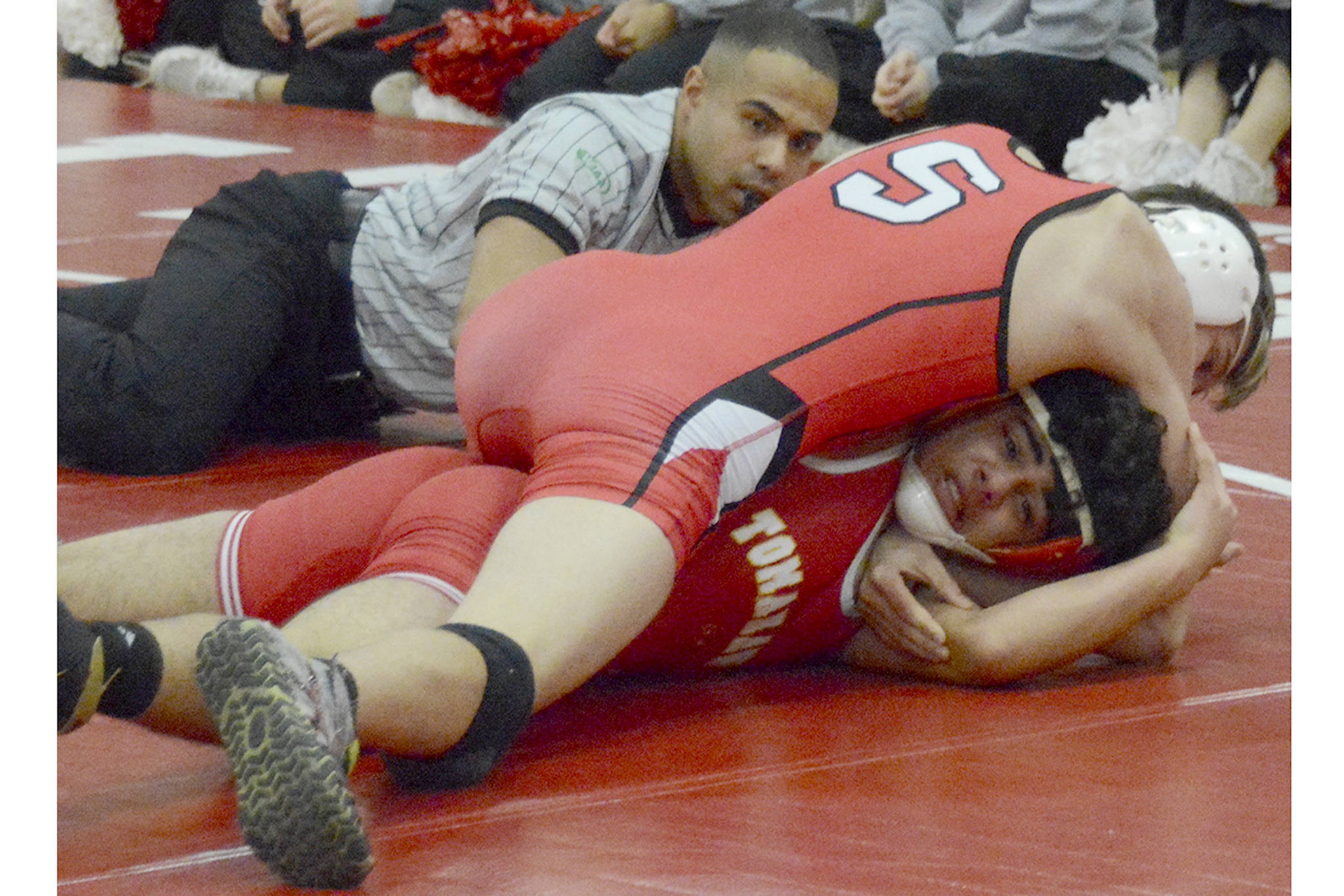 At 145 pounds, Isaiah Galindo dominated his foe for a 13-2 win. In the 170—pound match, Mauro Bejar won 9-3, and Cayden White won by pin in 1:27 in the 182—pound matchup.