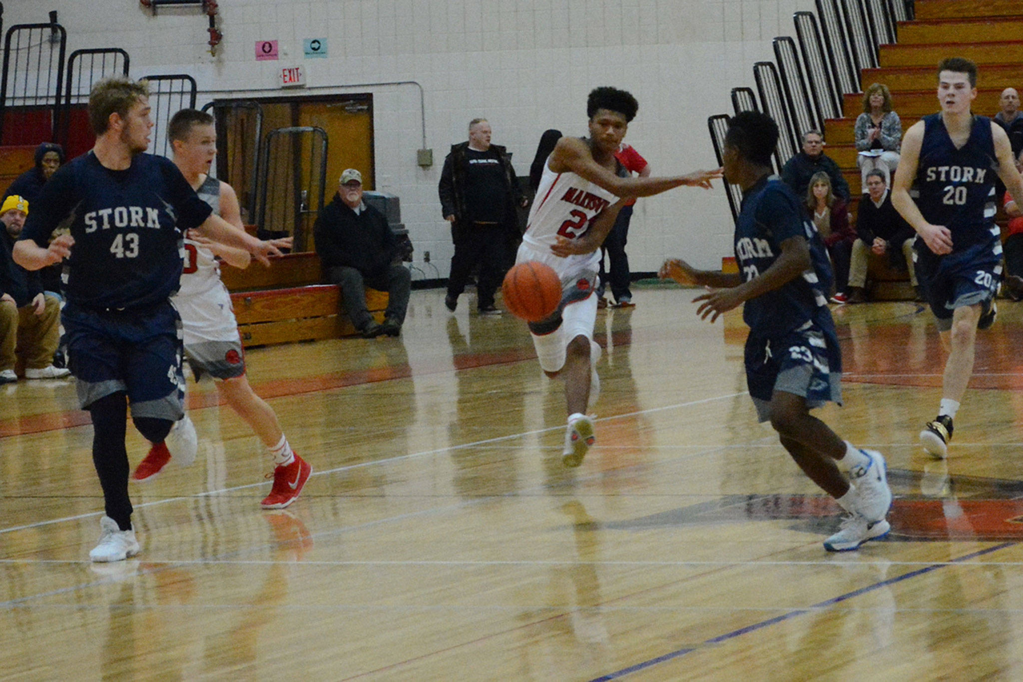 M-P beat the visiting Storm 65-48.
