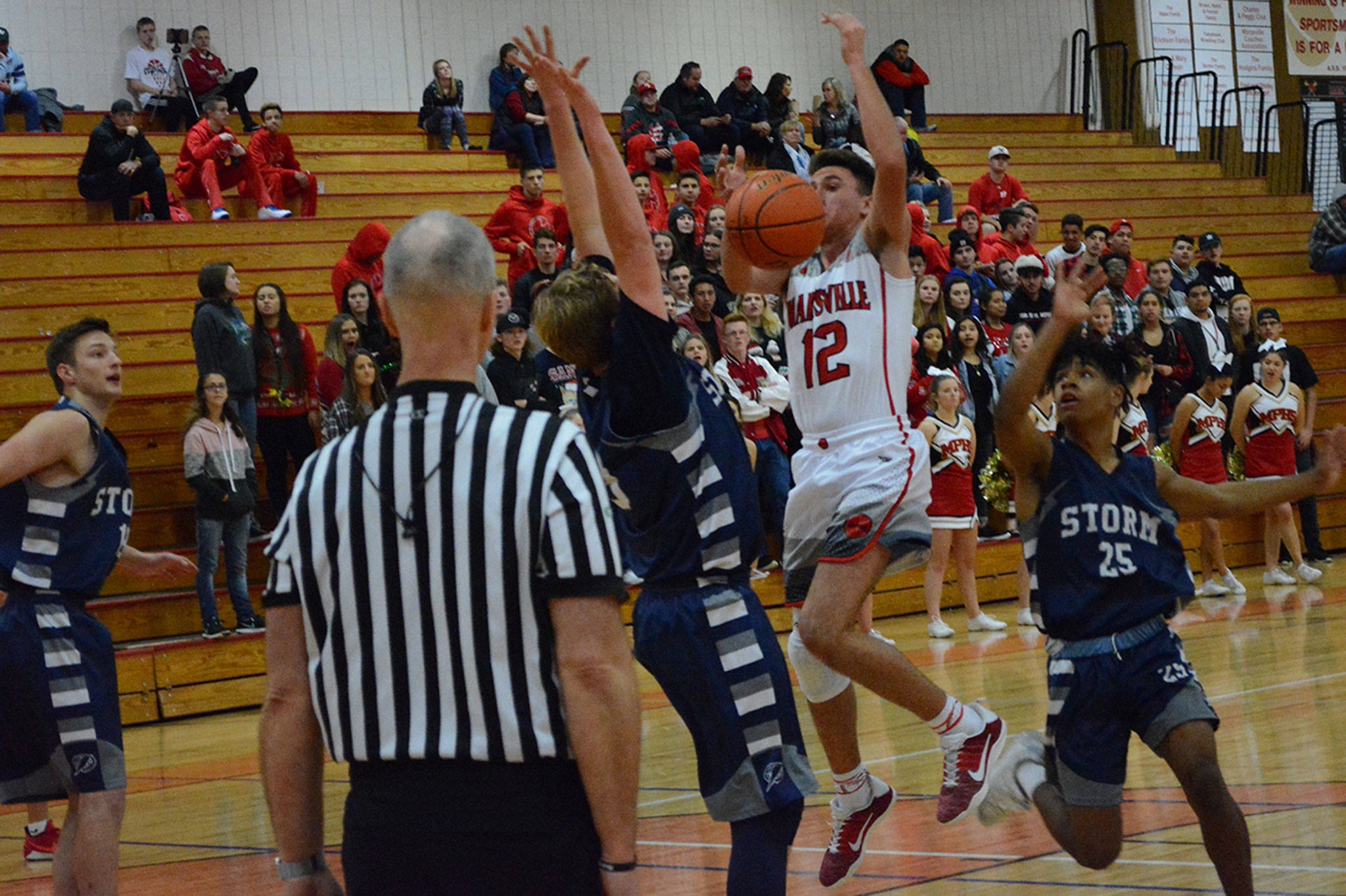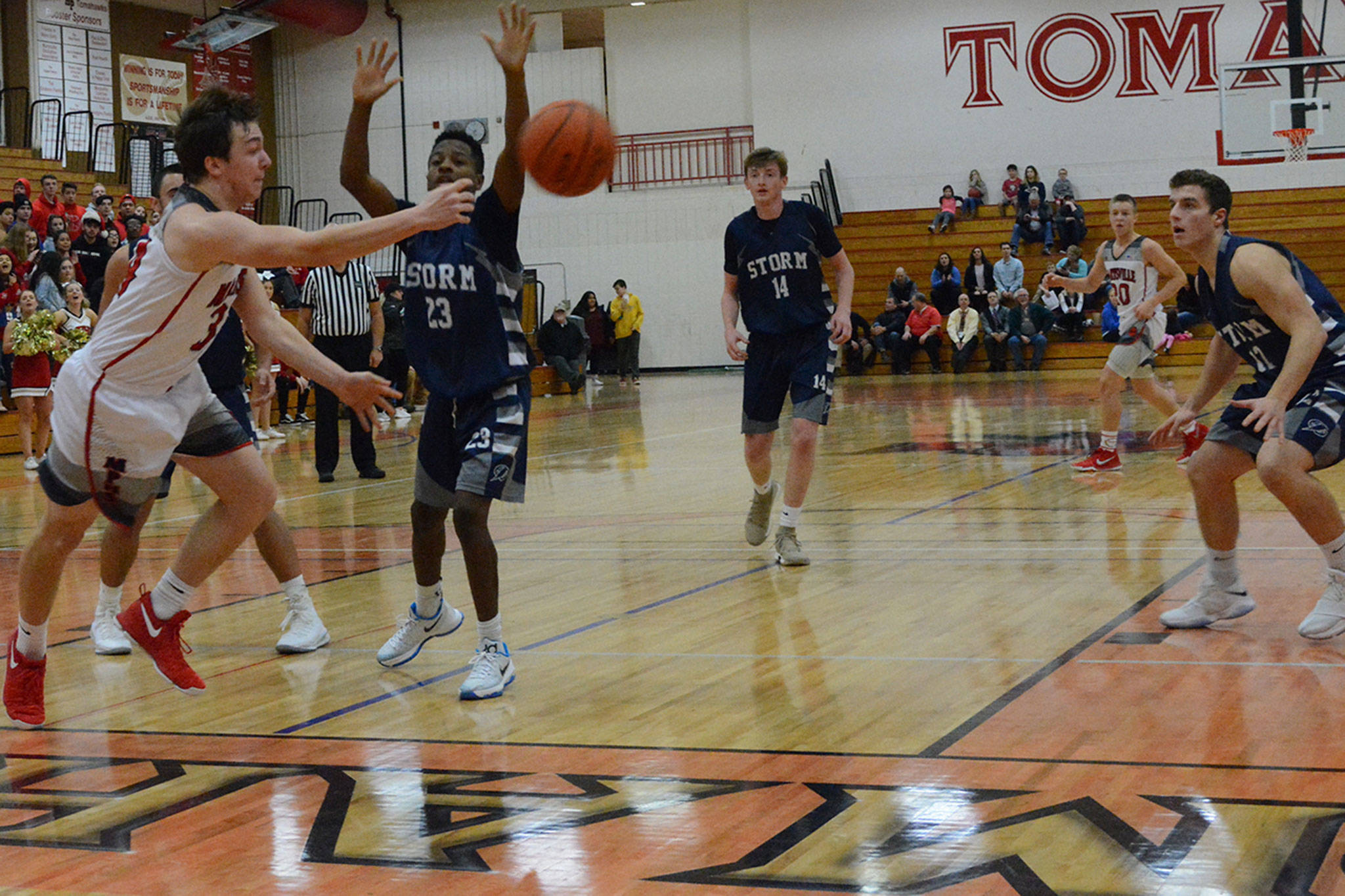 The Tomahawks didn’t score until 4:12 left in the first quarter after a steal and dunk by Battle. M-P actually trailed 12-7 at the end of the initial period, which was the Storm’s largest lead of the game.