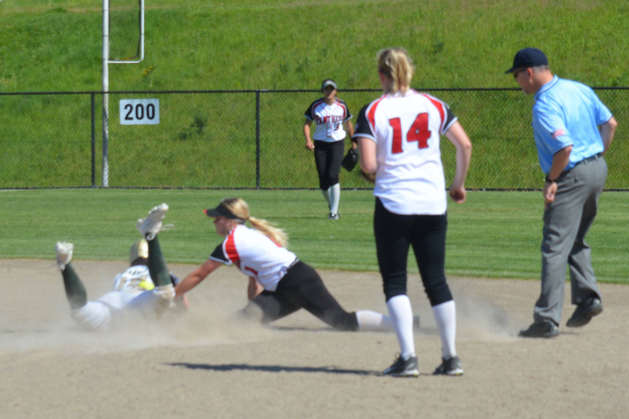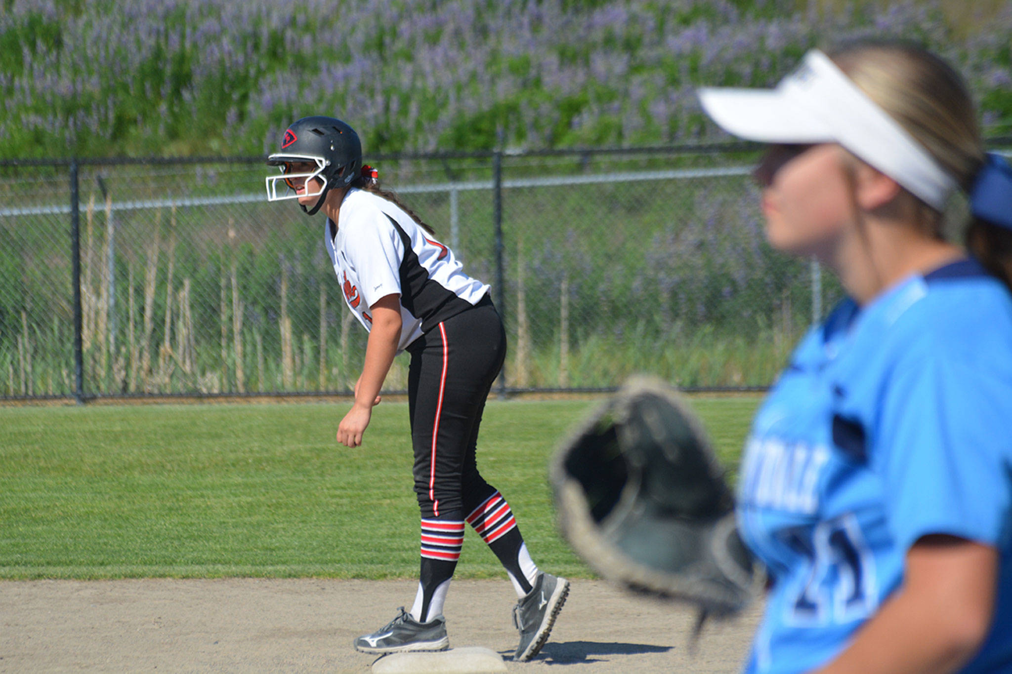 With the score 1-0, McKenzie Justice, who is often a power hitter, blasted a two-run homer over the centerfield fence to make it 3-0. Justice let out a big smile when asked if that took the pressure off her pitching in what had been a very tight game.