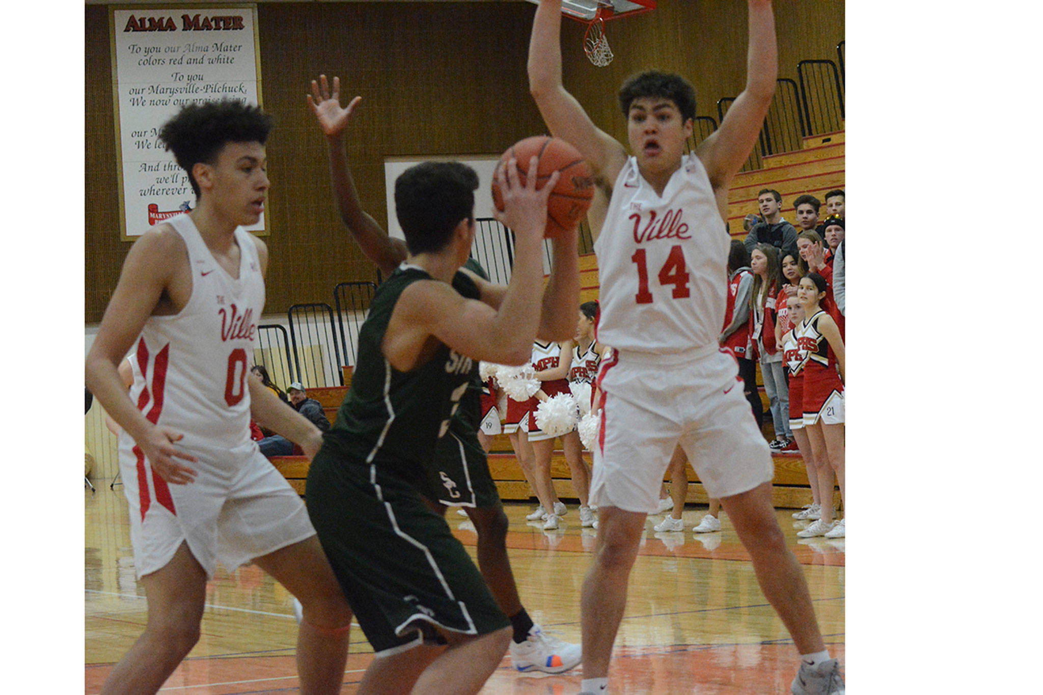 MARYSVILLE – The lack of practice due to snow days didn’t seem to faze either Marysville-Pilchuck’s or Marysville Getchell’s boys basketball teams in the first round of the 3A District 1 Tournament Wednesday night.