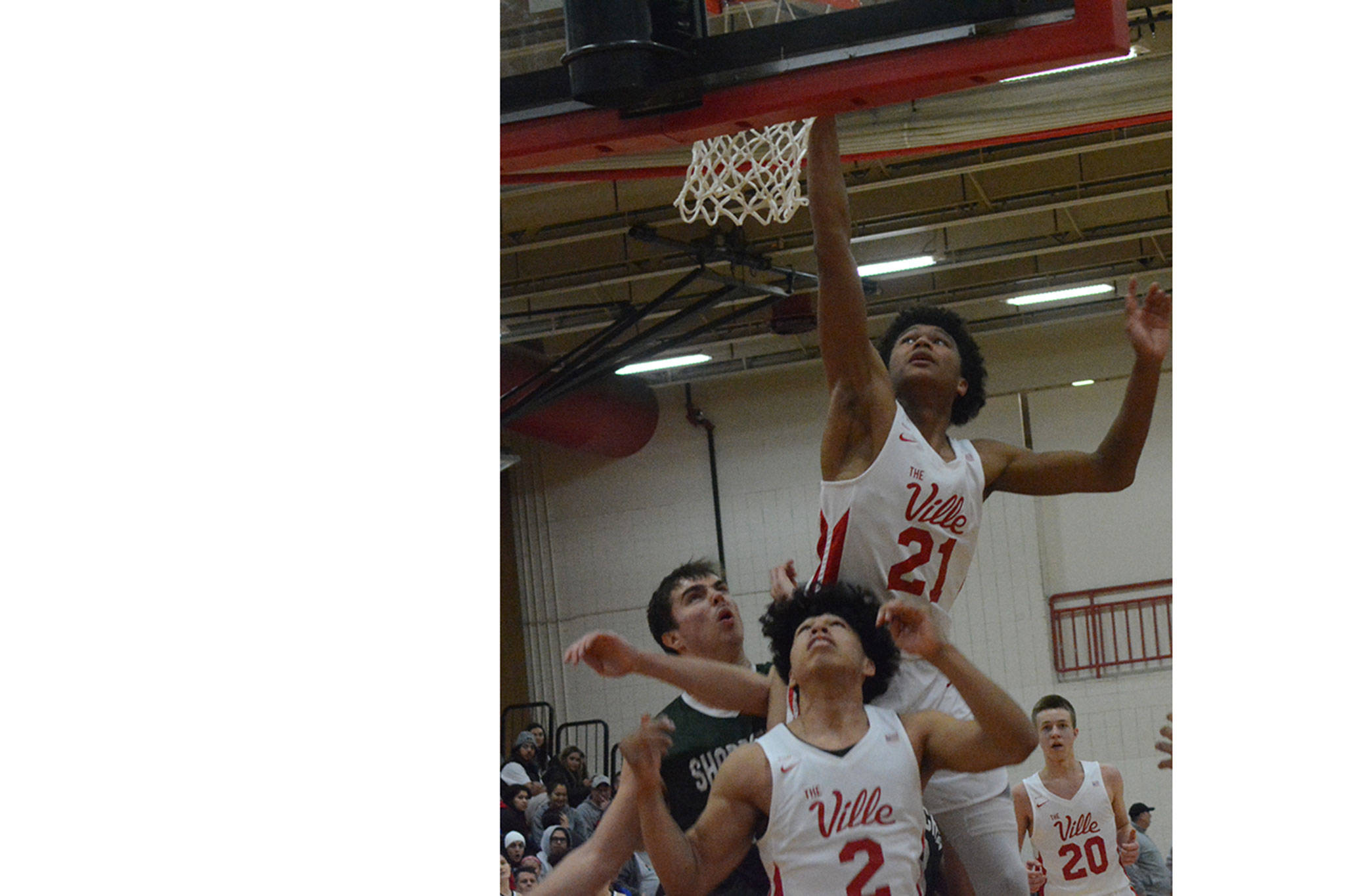 Shorecrest didn’t score for the first four minutes as M-P took an 8-0 lead. Cameron Stordahl scored inside after grabbing an offensive rebound, and Ethan Jackson scored on a fastbreak with an assist from Luke Dobler. After RaeQuan Battle dunked the ball, Jackson passed inside to Stordahl for two more. Battle passed inside to Stordahl before the visitors got their first basket of the game with 2:36 left in the period. Stordahl hit a fadeway from the baseline, and Dobler connected on a 3 to make it 16-6.