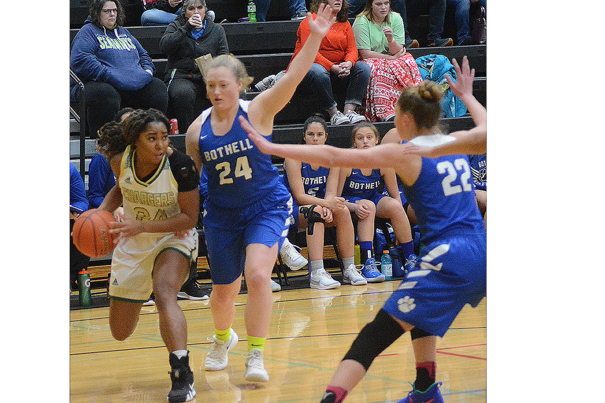 But visiting Bothell fought back to tie it at 24-24 with 1:07 left in the half before the Chargers took a 30-26 advantage at the break.