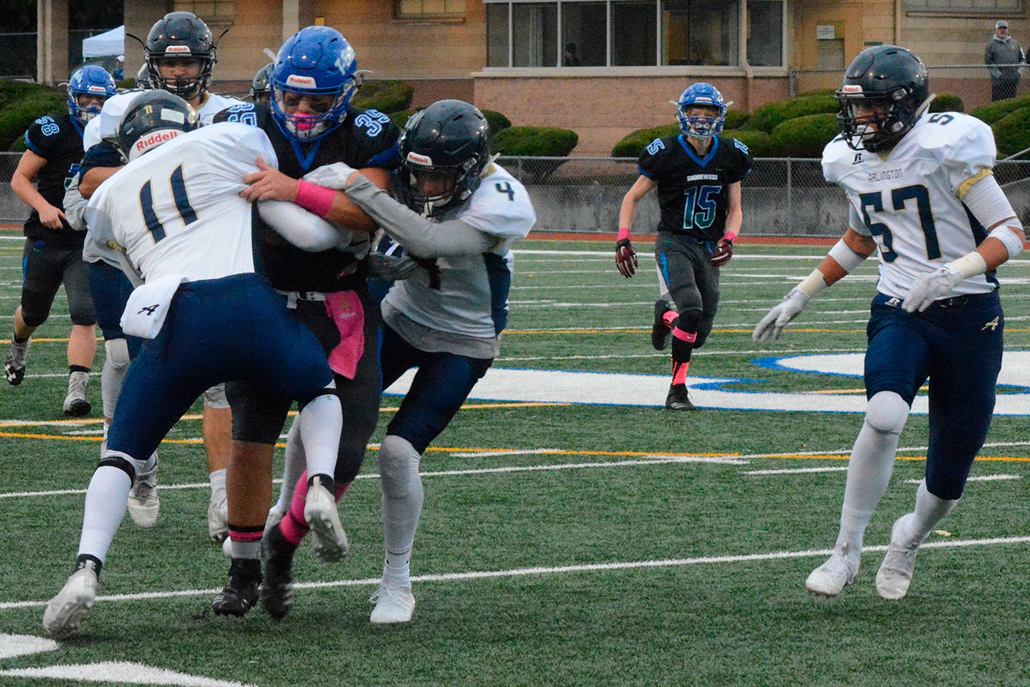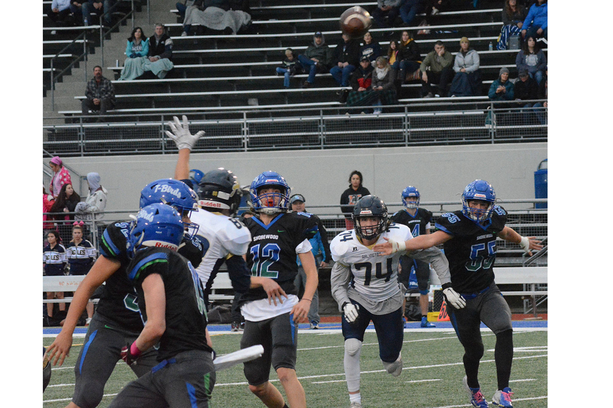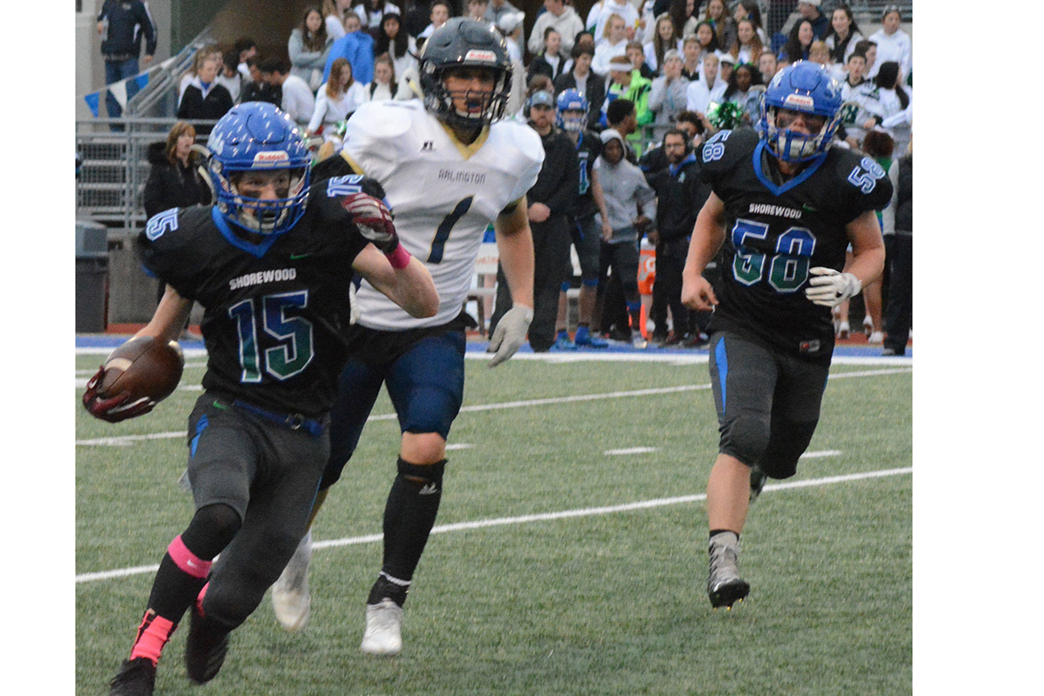 With 17 seconds left in that long third quarter, linebacker Kristain Fairbanks scooped up a Shorewood fumble and returned it about 70 yards for a score to make it 34-17. “The guys just got together on the side line and said, ‘Hey, this is enough,’” Eagles coach Greg Dailer told the Herald. “… When things aren’t going well our guys don’t get down. They respond very well.” Arlington moved the ball almost at will in the first half, taking the 27-0 lead. It could have been even more, but the horn blew, and Arlington’s last drive ended at the 2-yard line.