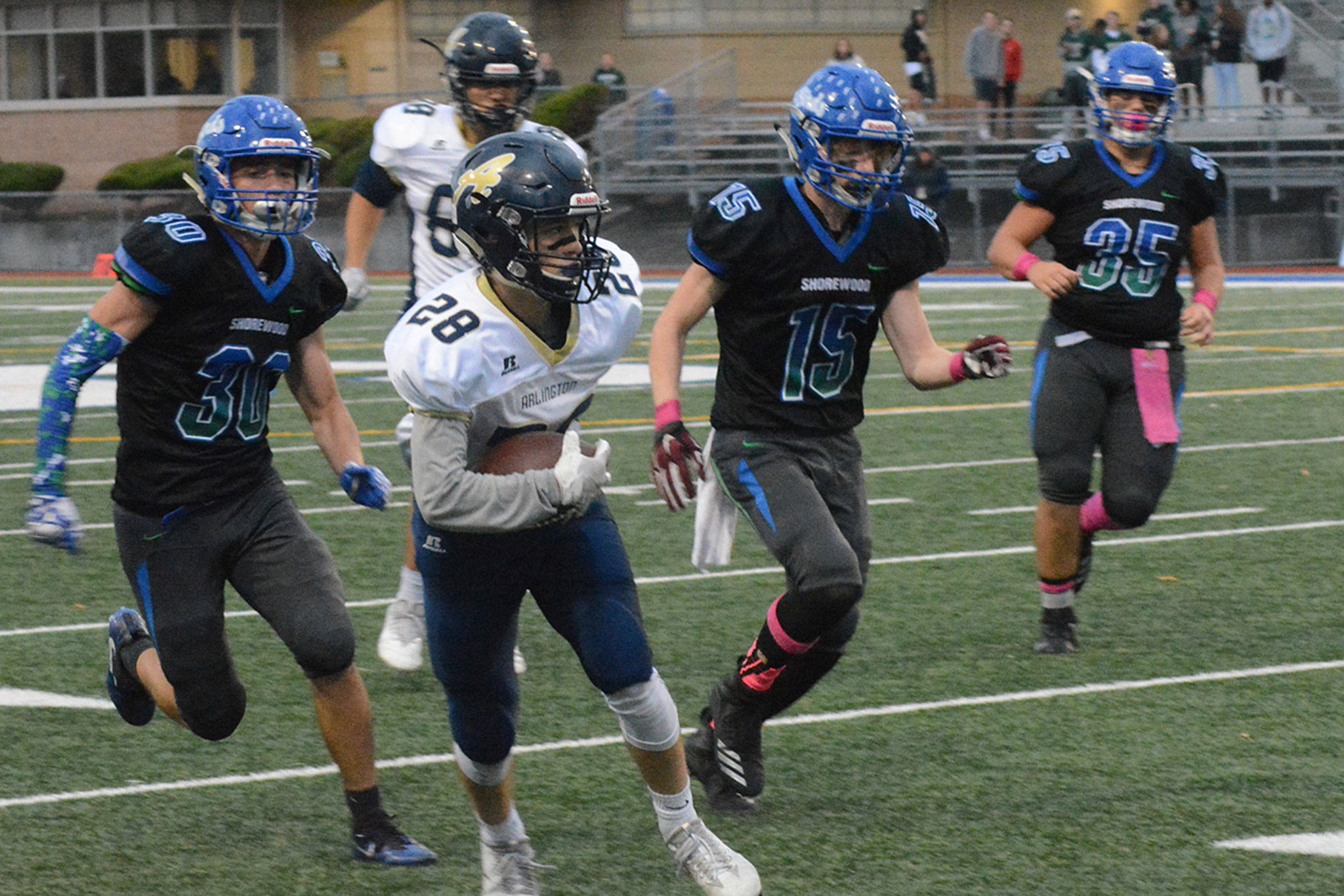 Shorewood scored again at the 4:32 mark on another short run after Arlington fumbled on the kickoff to make it 27-17.