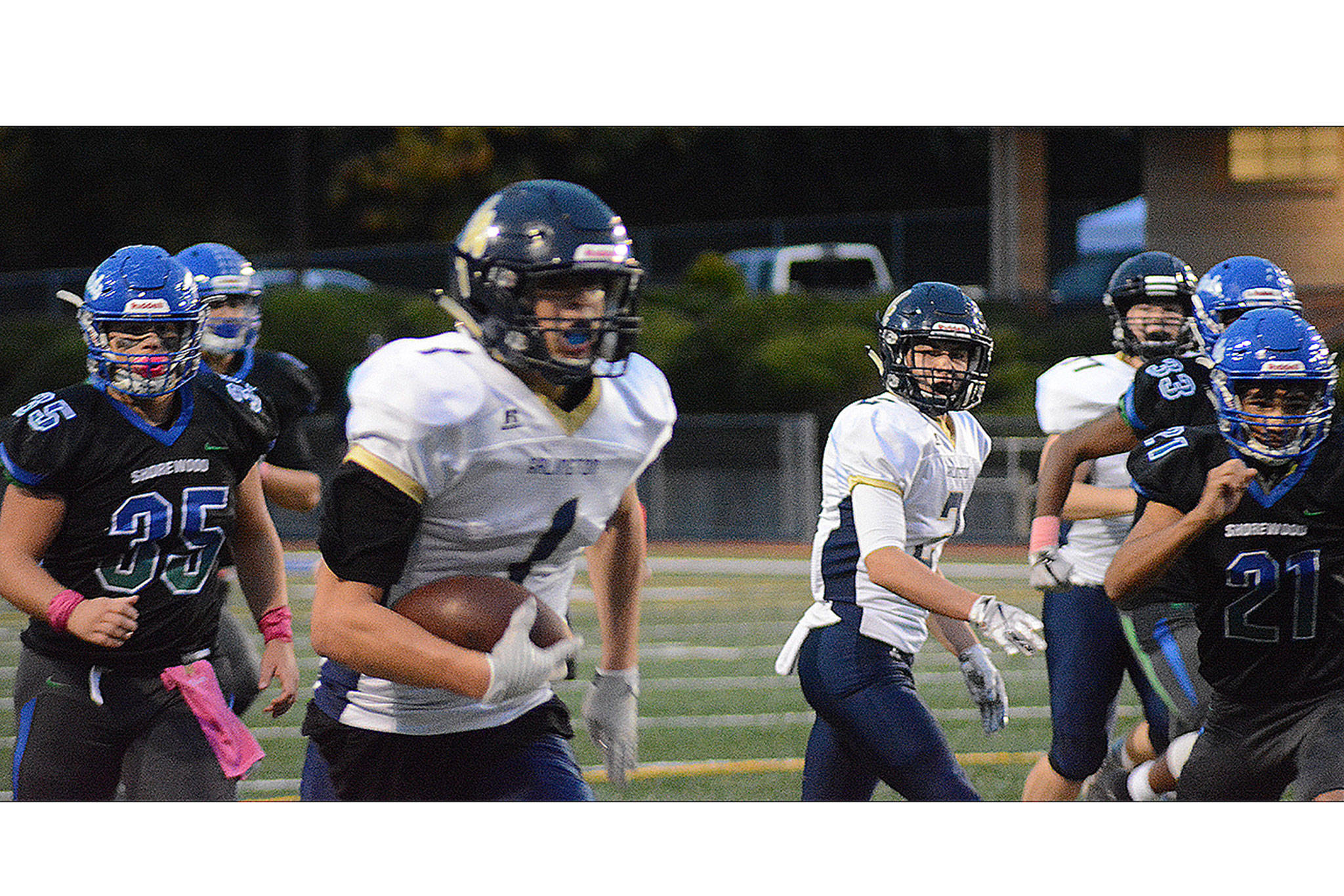 Whitis had another bomb intercepted, but Shorewood couldn’t move the ball, with a sack by Tsouokalas being the big defensive play.